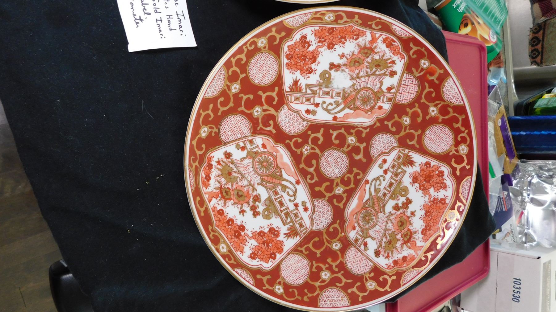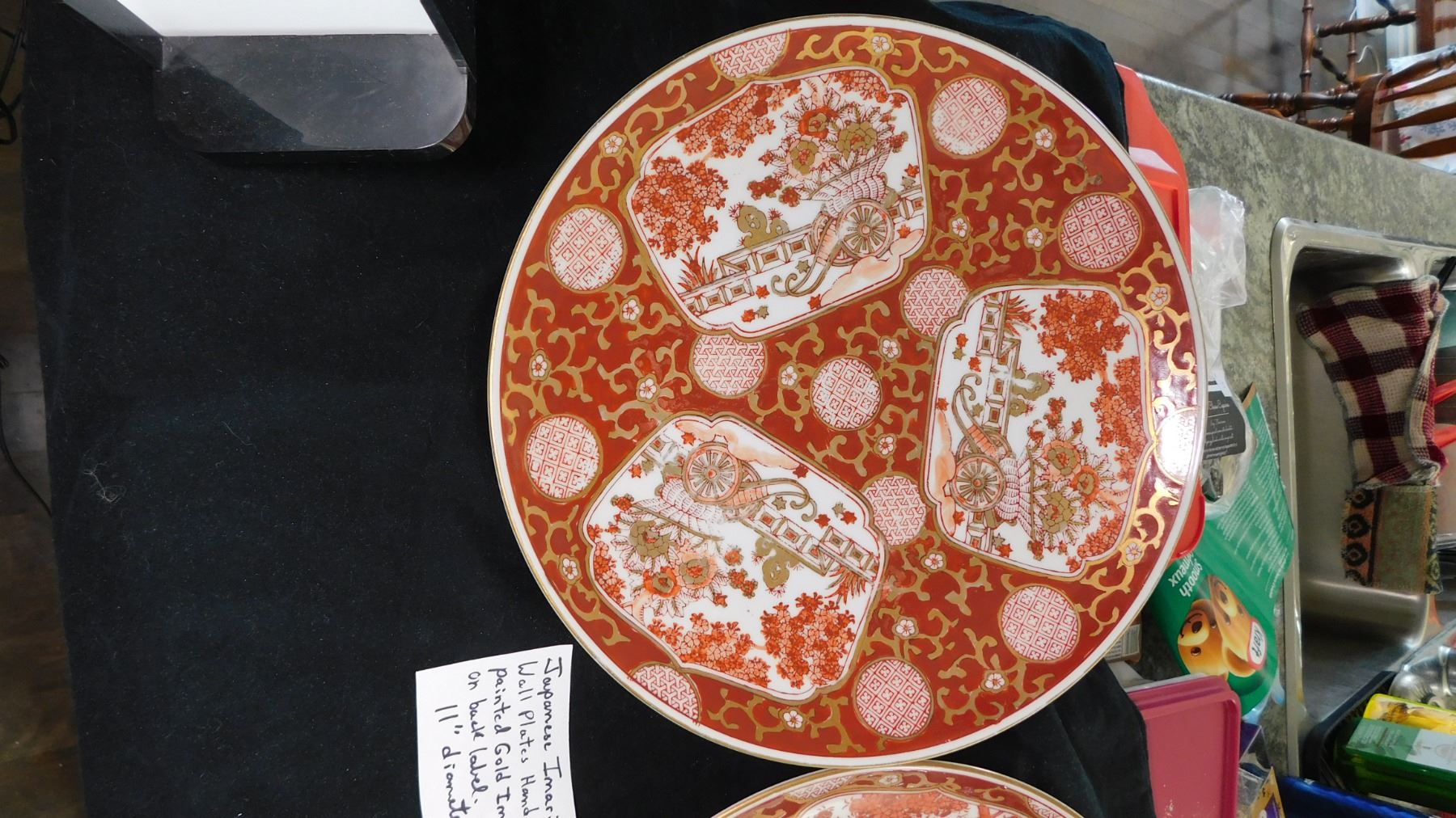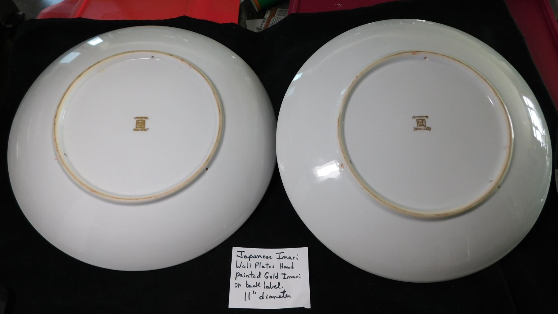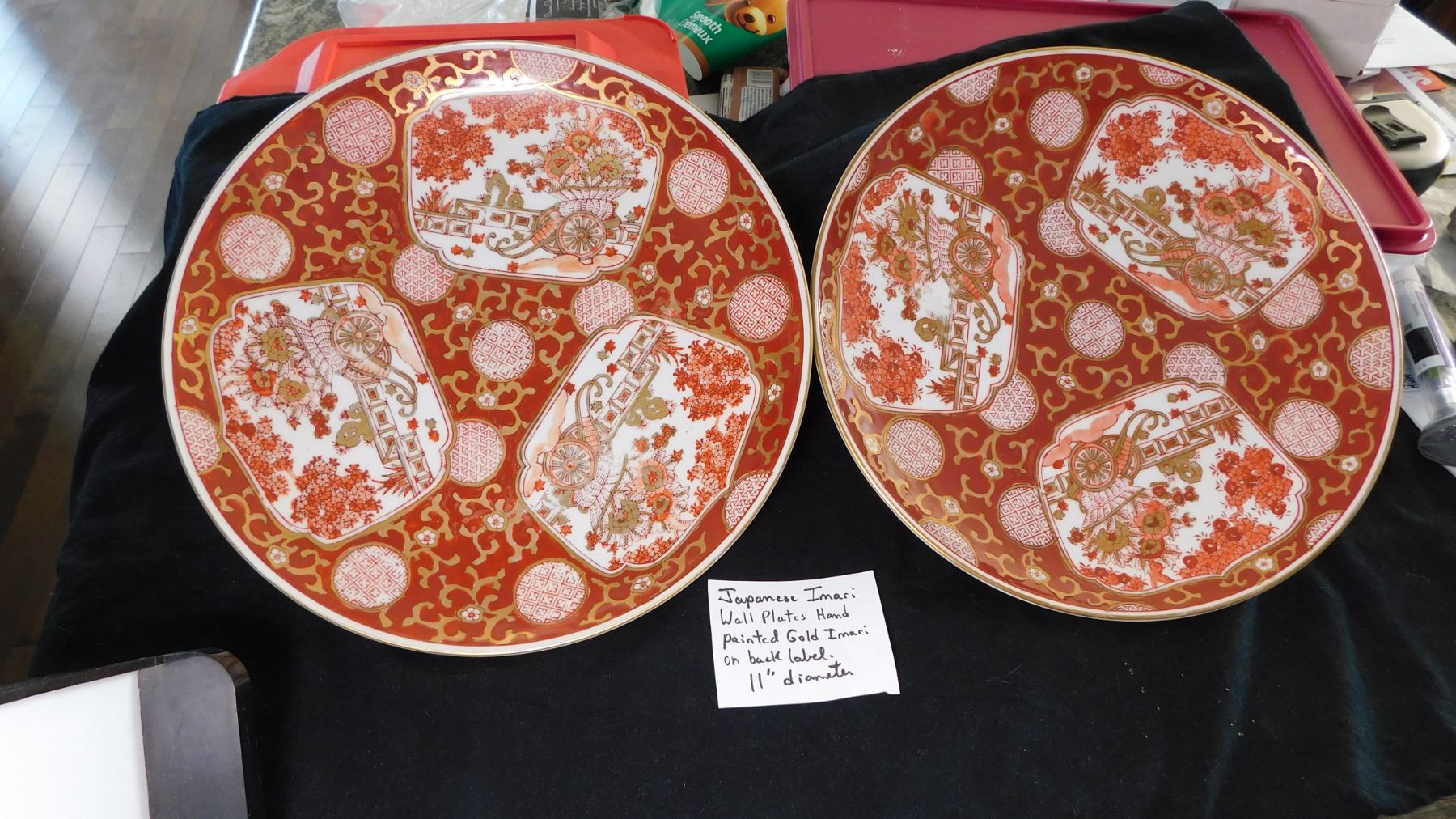 TWO JAPANESE IMARI WALL PLATES, HAND PAINTED 11” DIAMETER