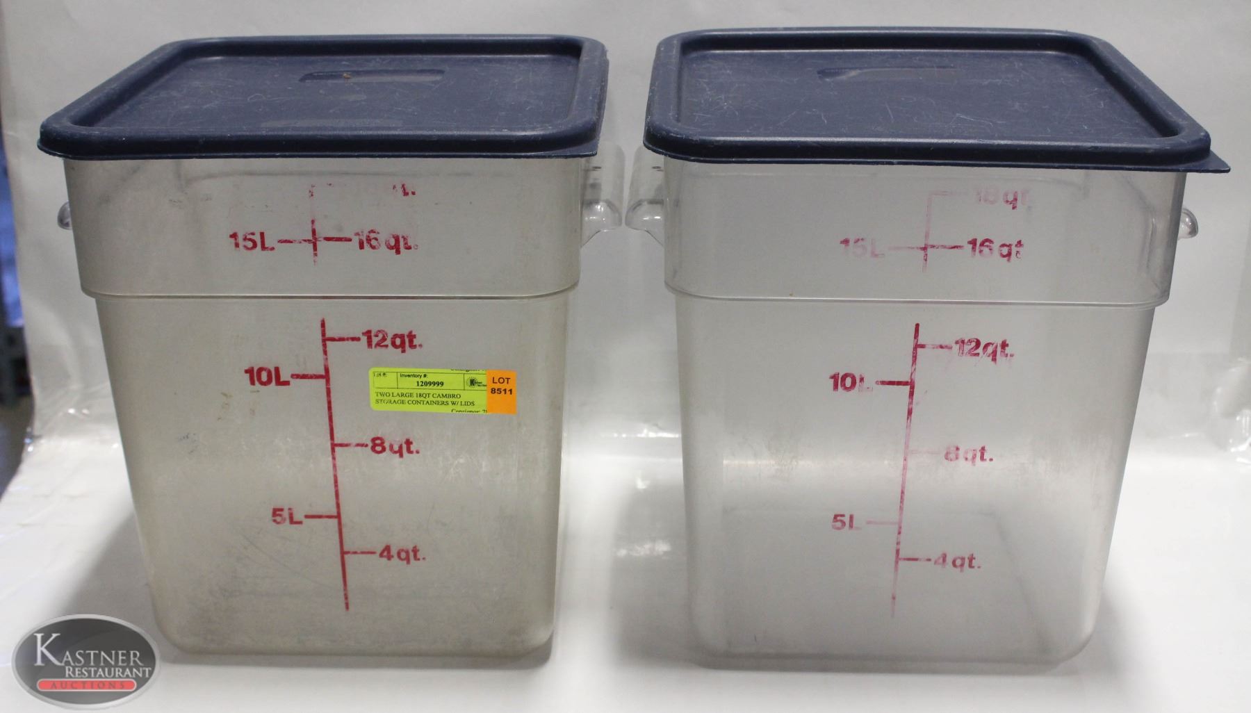TWO LARGE 18QT CAMBRO STORAGE CONTAINERS W/ LIDS