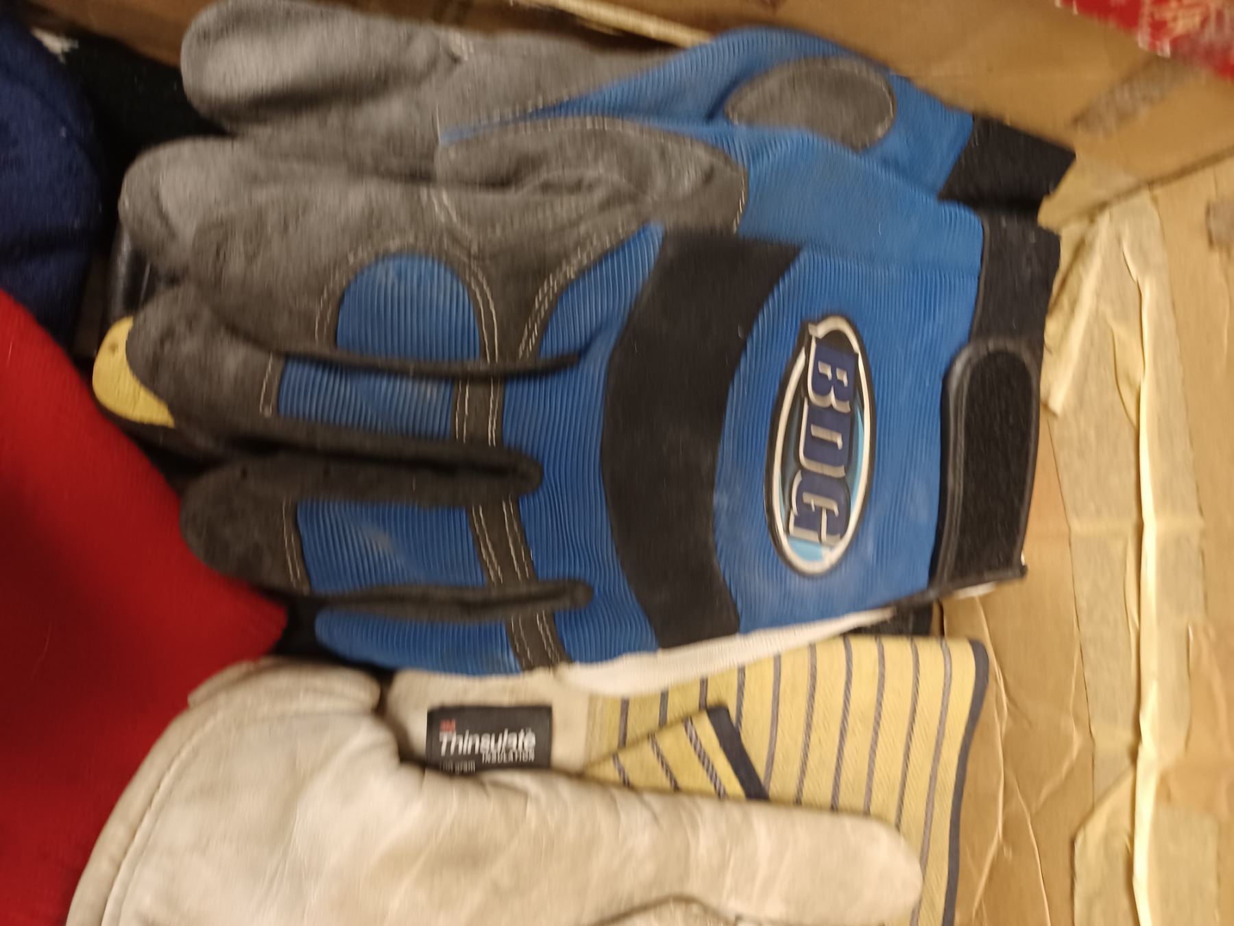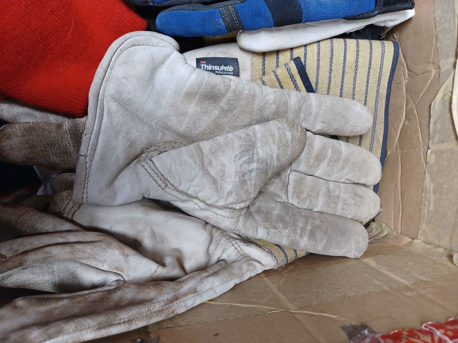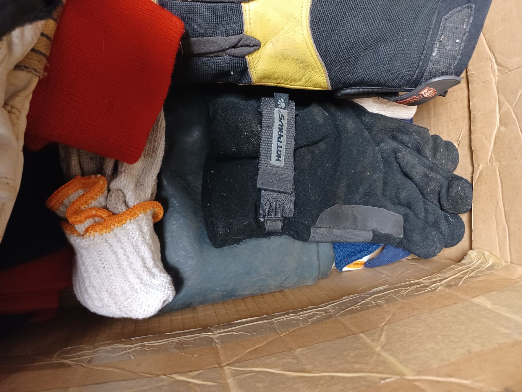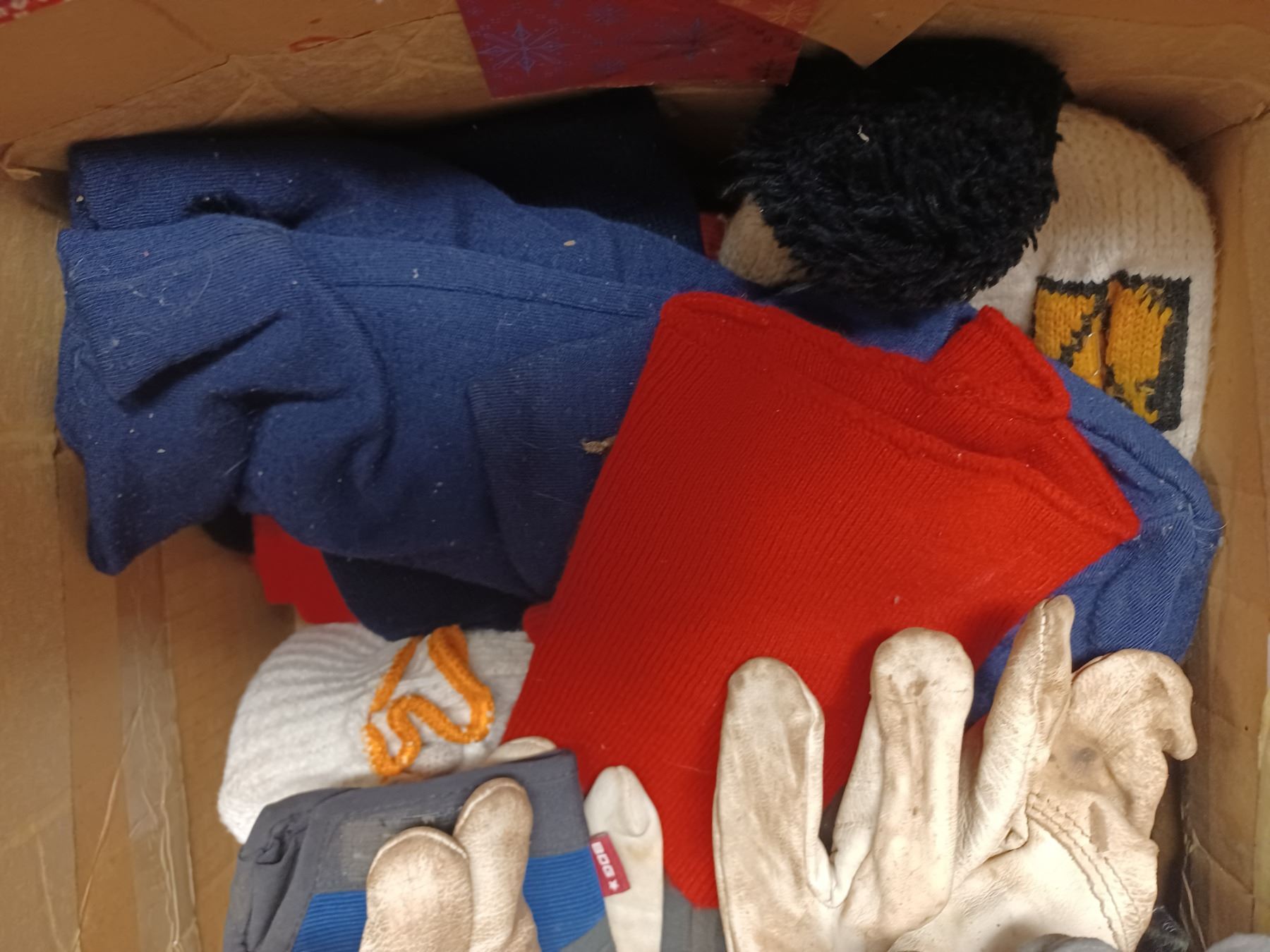 TWO LARGE BOXES HATS, TOQUES, WORK GLOVES AND NECK GATORS