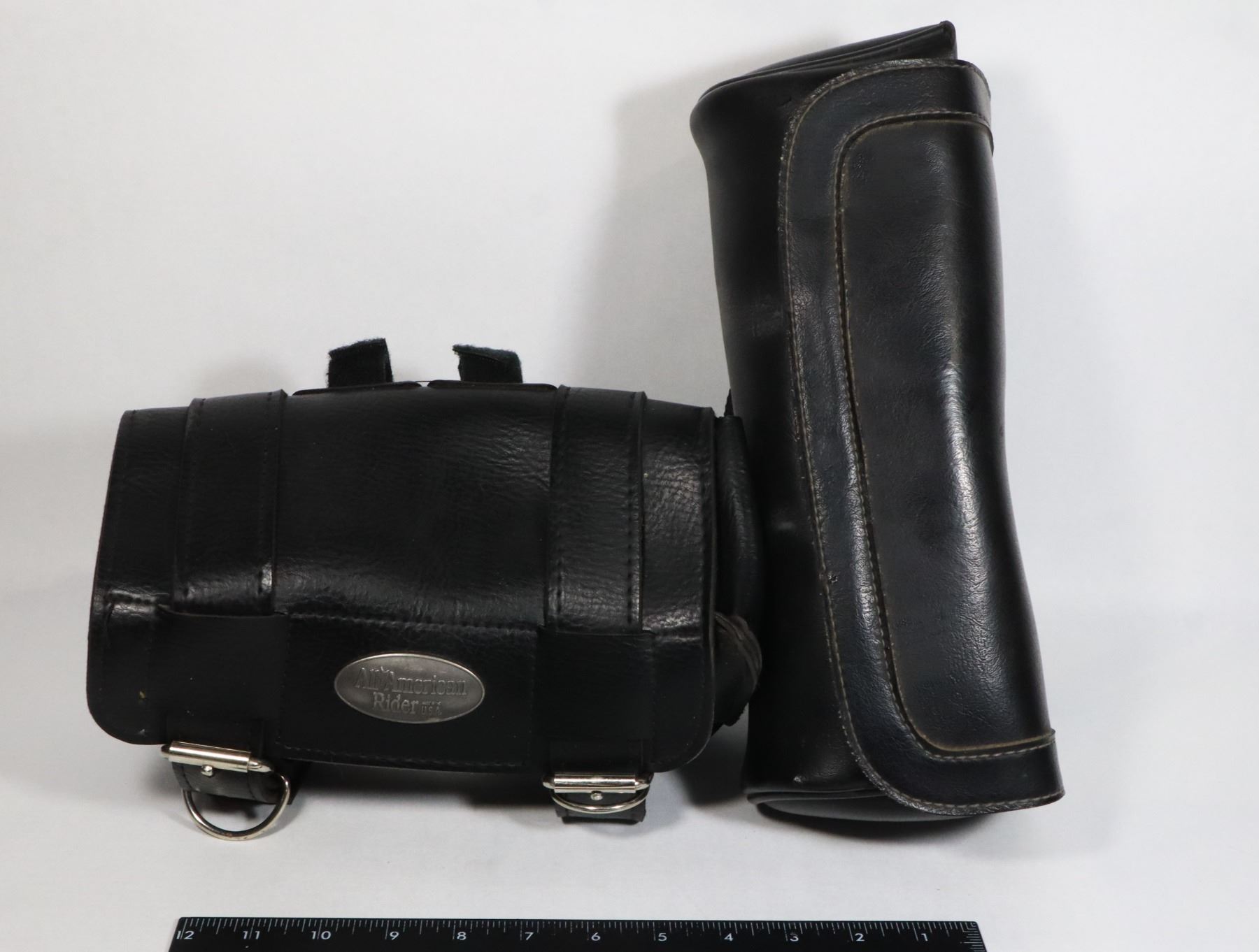 TWO LEATHER MOTORCYCLE SIDE BAGS