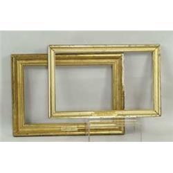 Lot 213 TWO LEMON GOLD FRAMESTWO LEMON GOLD FRAMES. 1) 12-1/4” x 20-1/4”. “View on the Hudson, Catskills in Distance by Francis A. Silva” plaque attached. 2) 12-3/4” x 18-3/4”. “Huts of Contrabands, Hilton Head, S.C. by Xanthus Smith” plaque attached. Kennedy Galleries label to reverse. CONDITION: Some gilt loss, good. 12-345 (75-125)