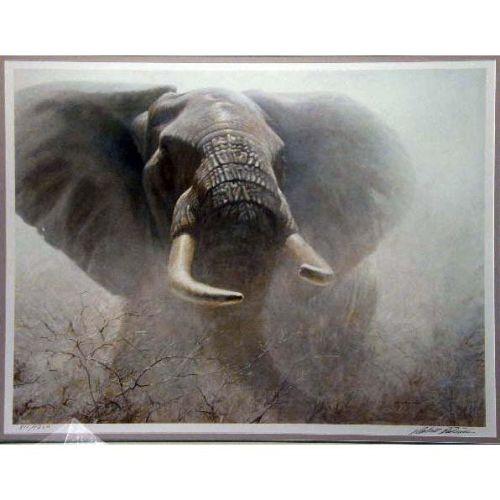 TWO LIMITED EDITION COLOR "WILDLIFE" LITHOGRAPHS<BR><BR>After Robert Bateman, signed and numbered in pencil, one of a leopard #283/1250, 16"l x 29"w, and one of a bull elephant #811/1550, 22"l x 29"w