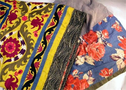 TWO LINED NEEDLEWORK PANELS; One with a bright yellow field, the other olive green (worn).