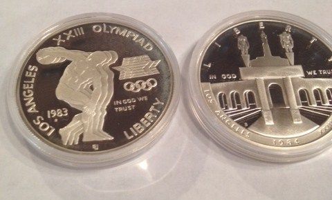 TWO LOS ANGELES OLYMPIC 90% SILVER COMMEORATIVE DOLLARS