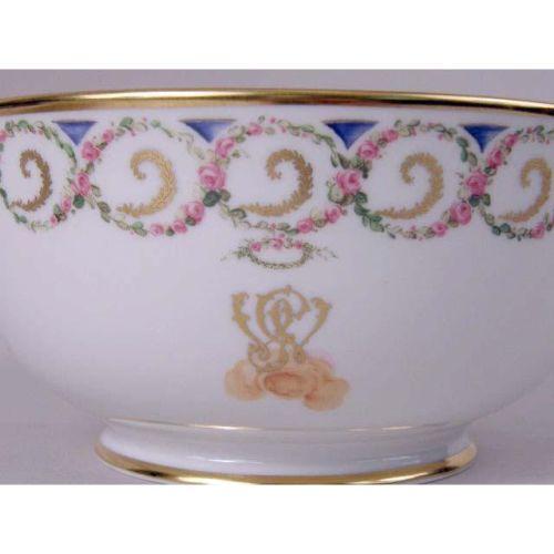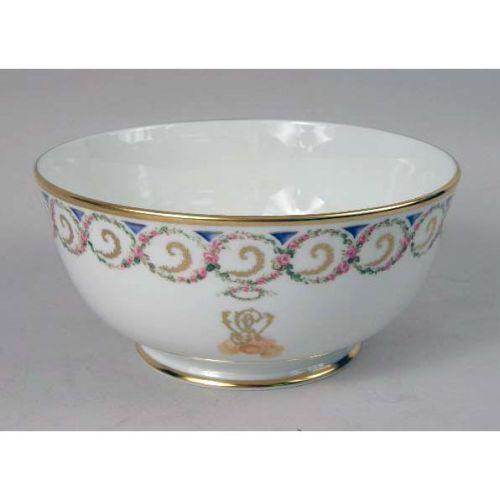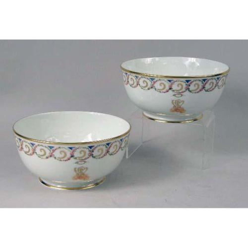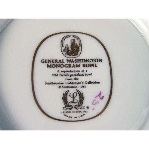 TWO MATCHING LENOX POLYCHROME AND PARCEL-GILT DECORATED PORCELAIN BOWLS<BR><BR>Marked underside "George Washington Monogram Bowl," in original boxes, 4"h x 8"dia.