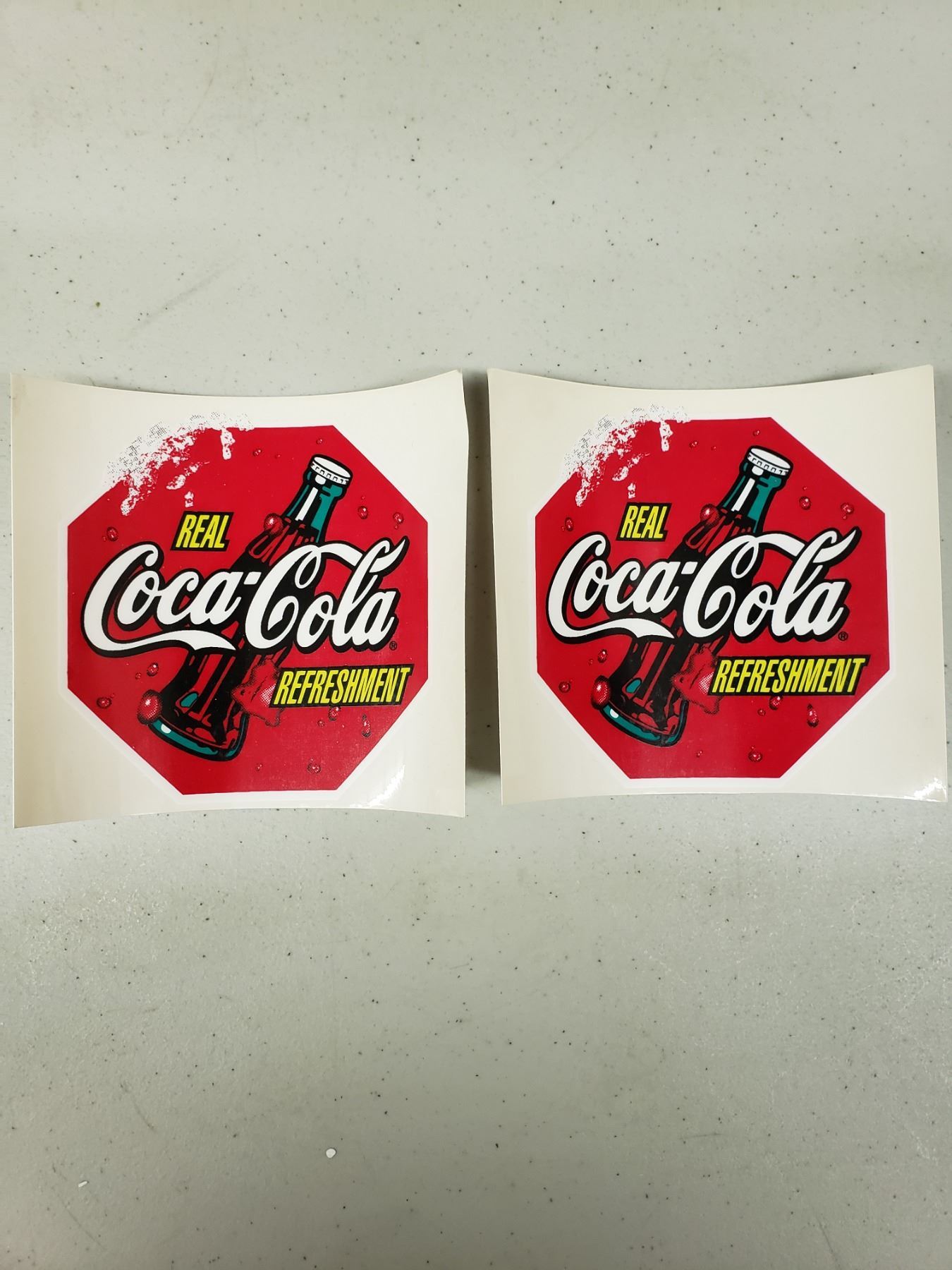 TWO MEDIUM COCA COLA WINDOW STICKERS