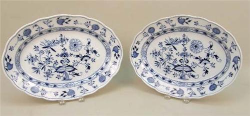 <b>TWO MEISSEN BLUE ONION OVAL PLATTERS</b>