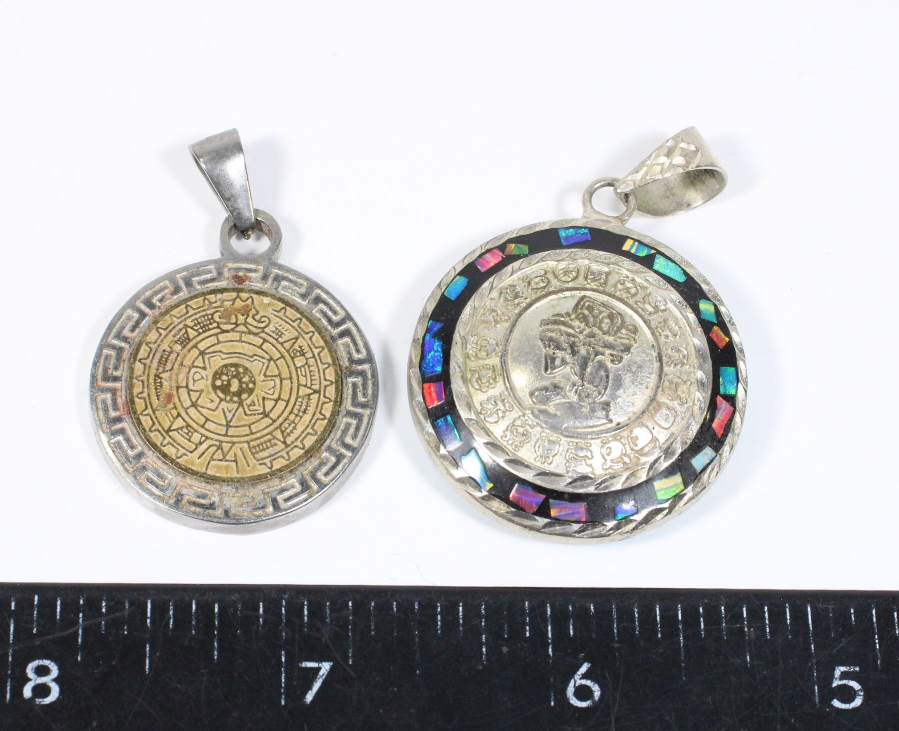 TWO MEXICAN MAYAN CALENDAR PENDANTS