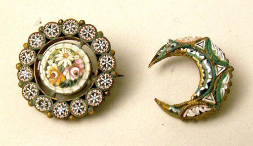 One circular, 1"dia., the other crescent form, 7/8"l.