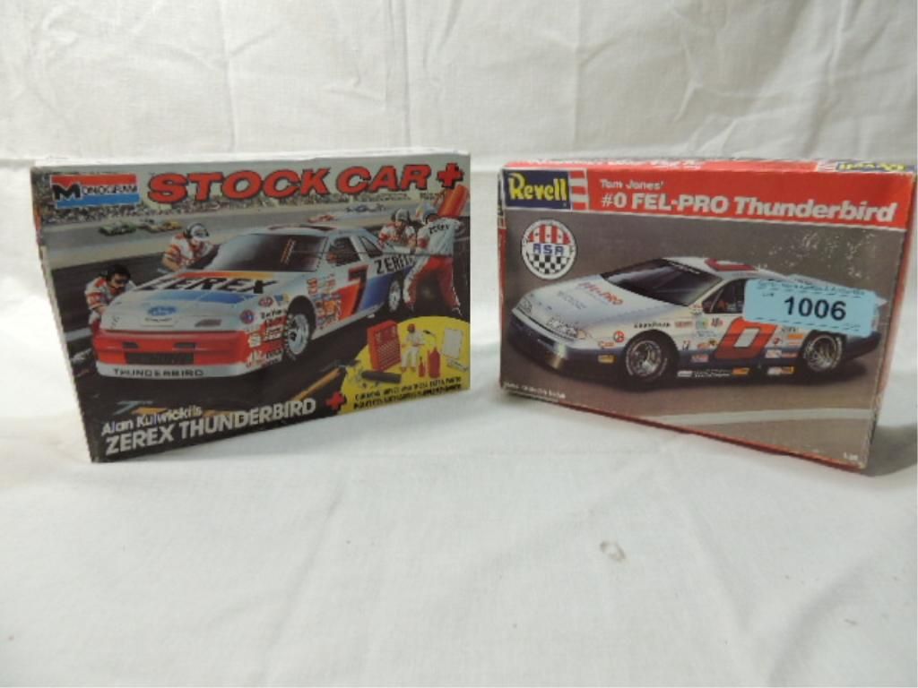 TWO MODEL CAR KITS. NASCAR CARS. TOM JONES, ZEREX THUNDERBIRD. AS SHOWN. SEE PICTURES FOR DETAILS.