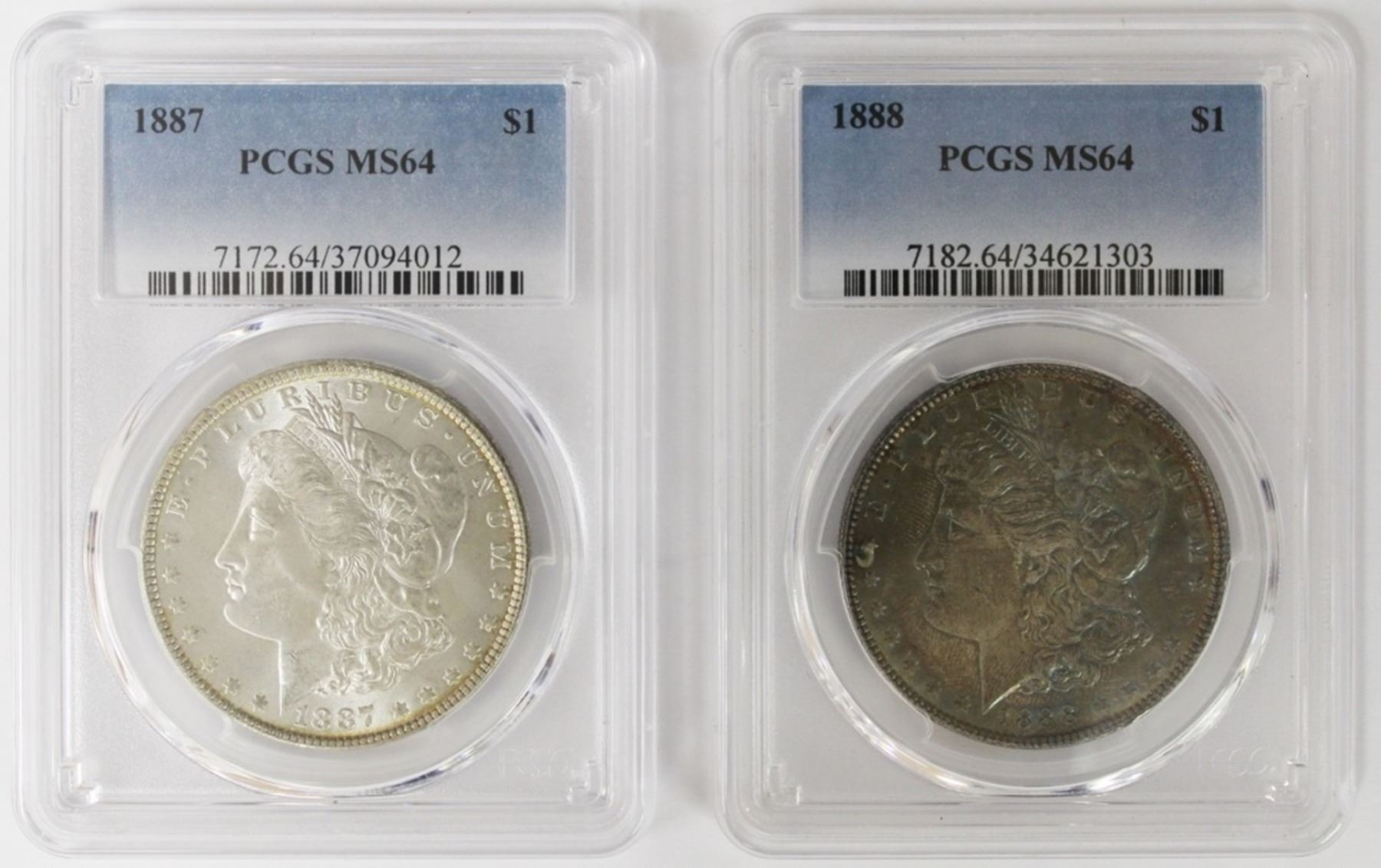 PCGS MS64: 1887 AND 1888. ESTIMATE: $175-$200