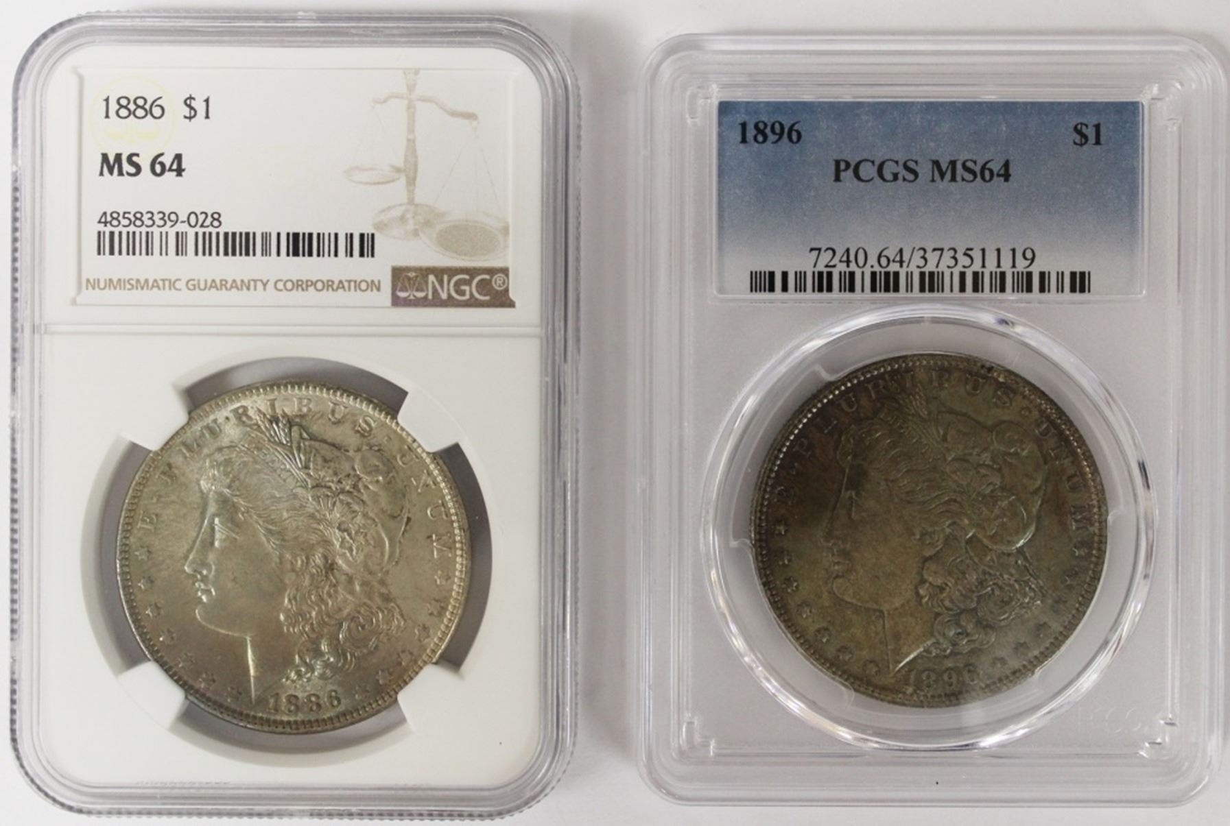 1886 NGC GRADED. MS64 AND 1896 PCGS GRADED MS64. ESTIMATE: $175-$200