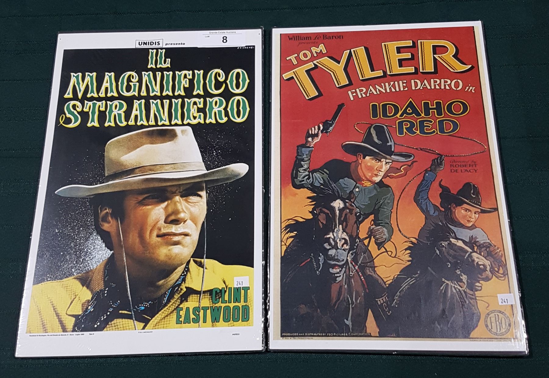 "MAGNIFICENT STRANGER" CLINT EASTWOOD, "IDAHO RED" WESTERN, APPROX 17" X 11", BOTH ARE SHRINK WRAPPED