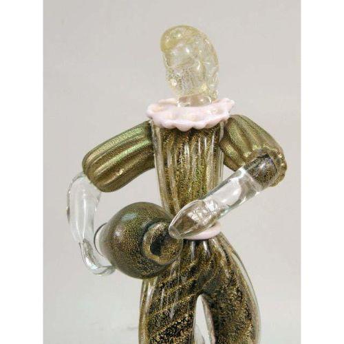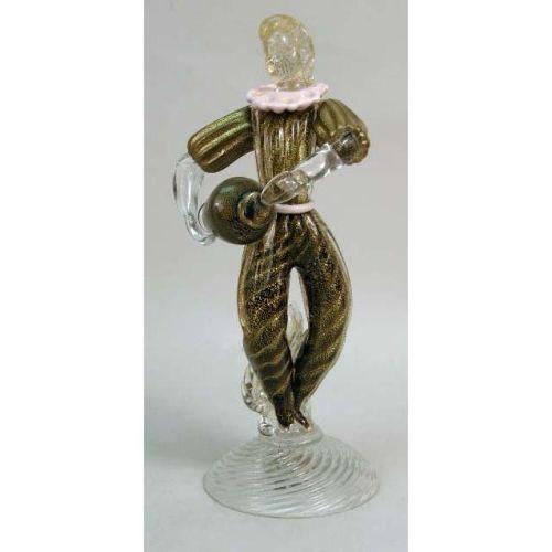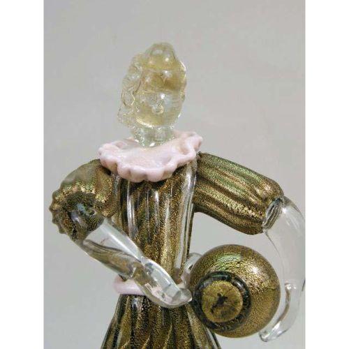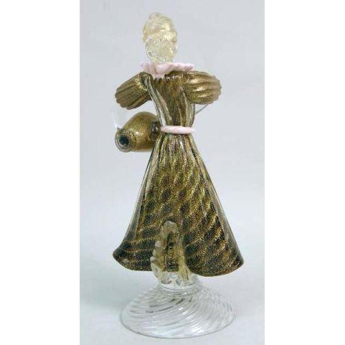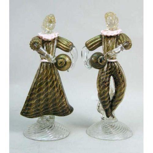 TWO MURANO GLASS FIGURES<BR><BR>Depicting a male and female holding urns, 11 1/2"h