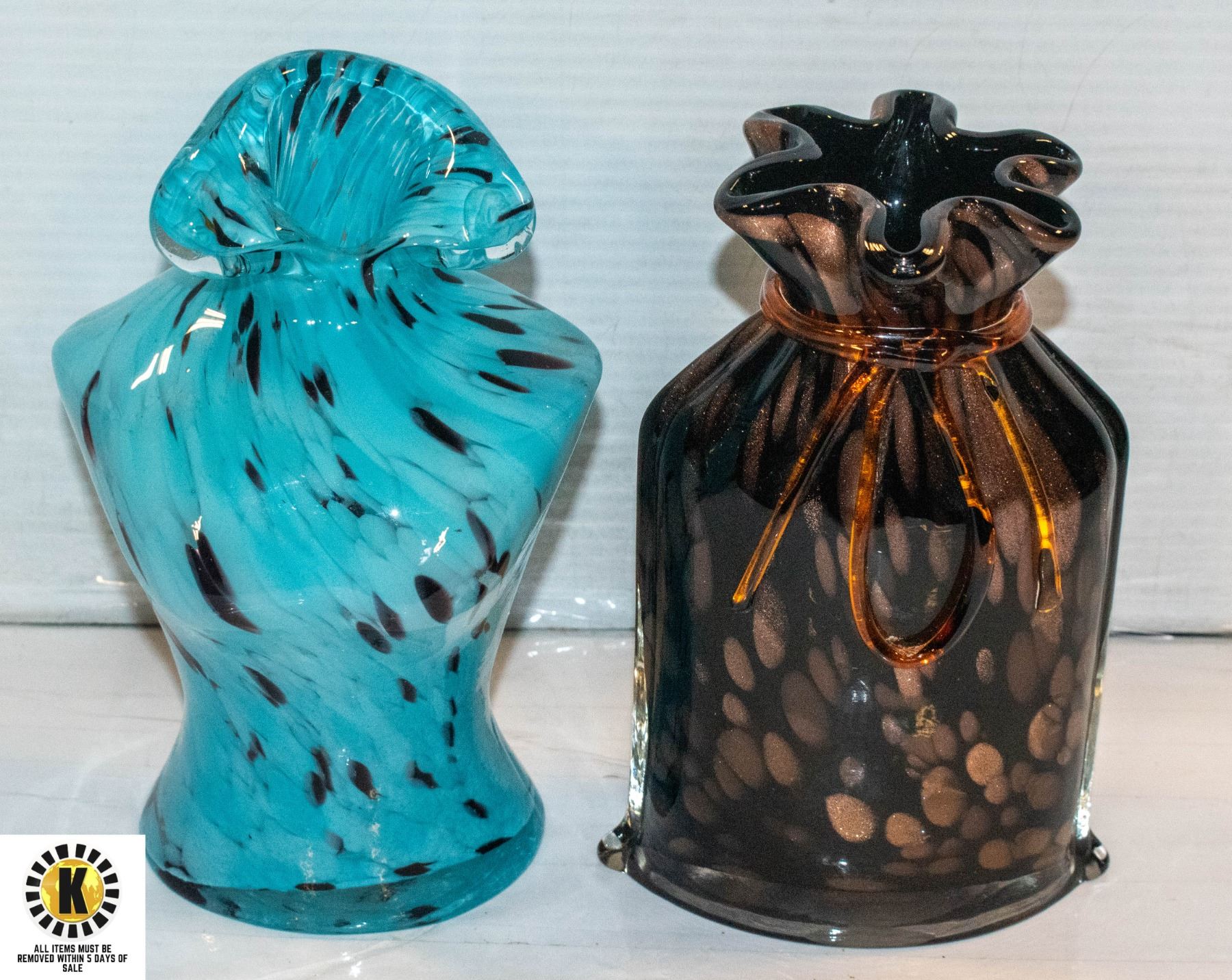 TWO MURANO STYLE HAND BLOWN GLASS DECOR PIECES