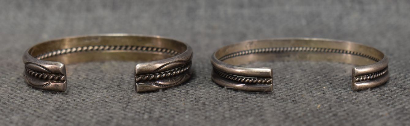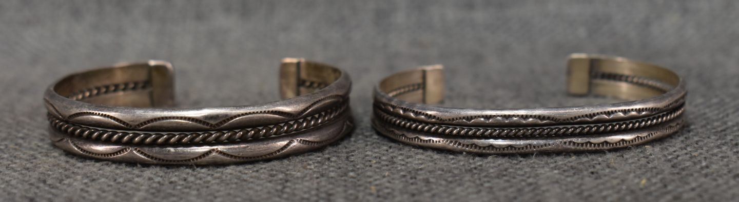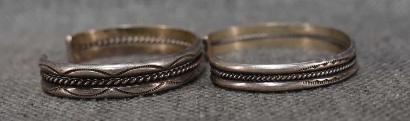 1980's Navajo Indian hand made sterling silver twisted wire and stamp design .25" x 5.25" x 1" total weight 36 grams