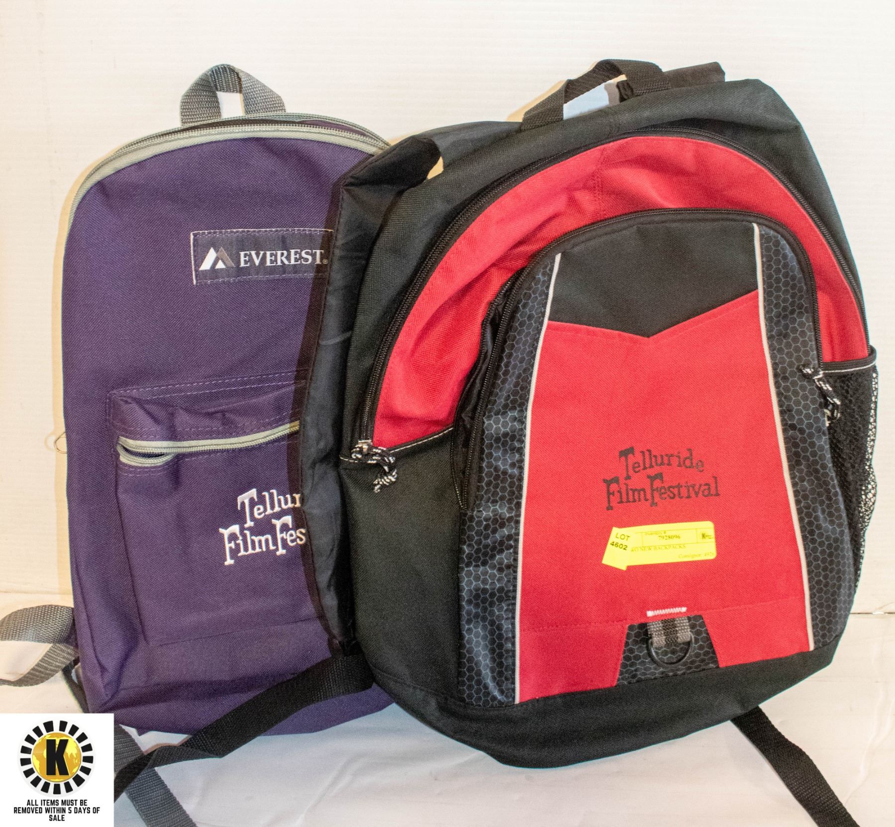 LARGE ZIPPERED MAIN POUCH WITH SMALLER ZIPPERED FRONT POUCH - ONE PURPLE AND ONE RED/BLACK