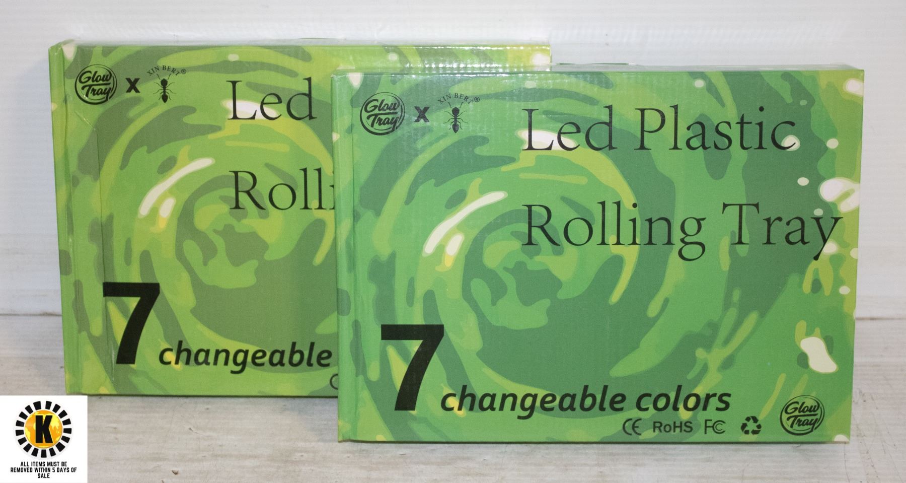 TWO NEW LED PLASTIC ROLLING TRAYS W/ 7 CHANGEABLE