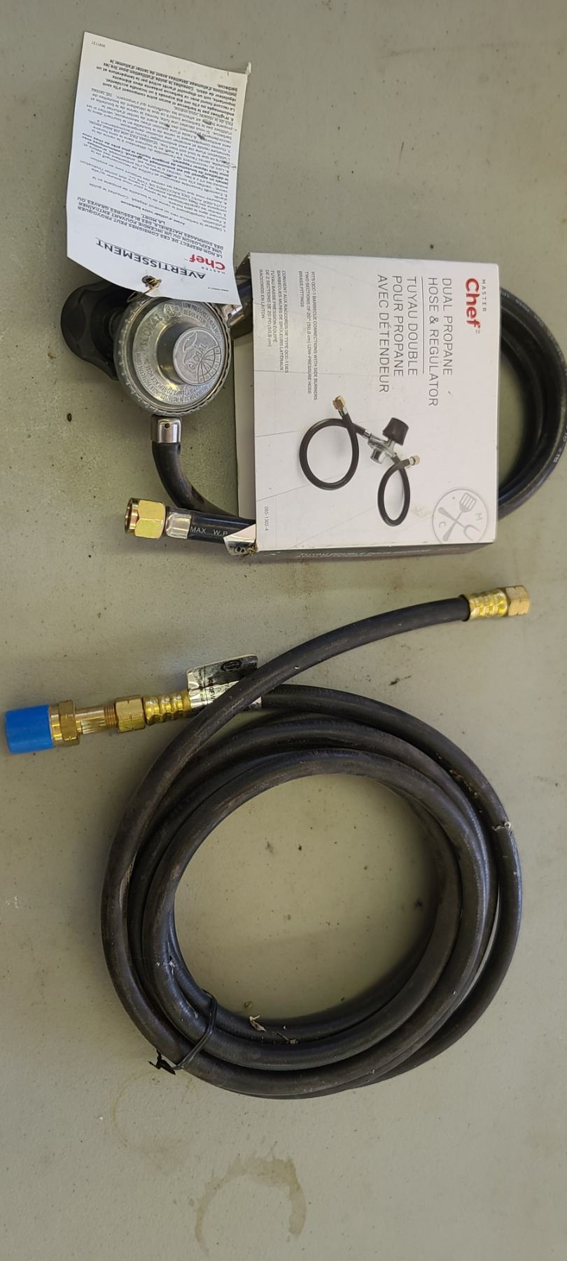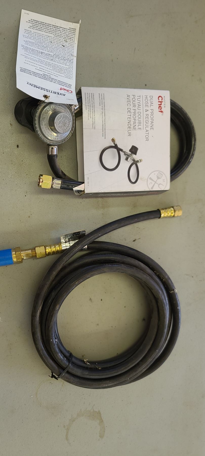 TWO NEW PROPANE HOSES WITH ONE REGULATOR