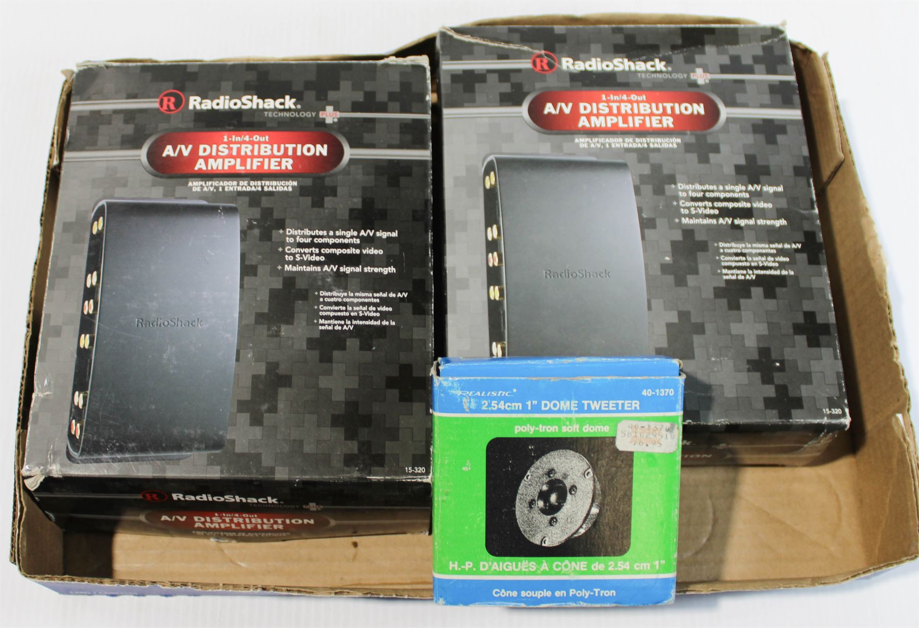 TWO NEW RADIOSHACK A/V DISTRIBUTION AMPLIFIER & NEW REALISTIC 1" DOME TWEETER.