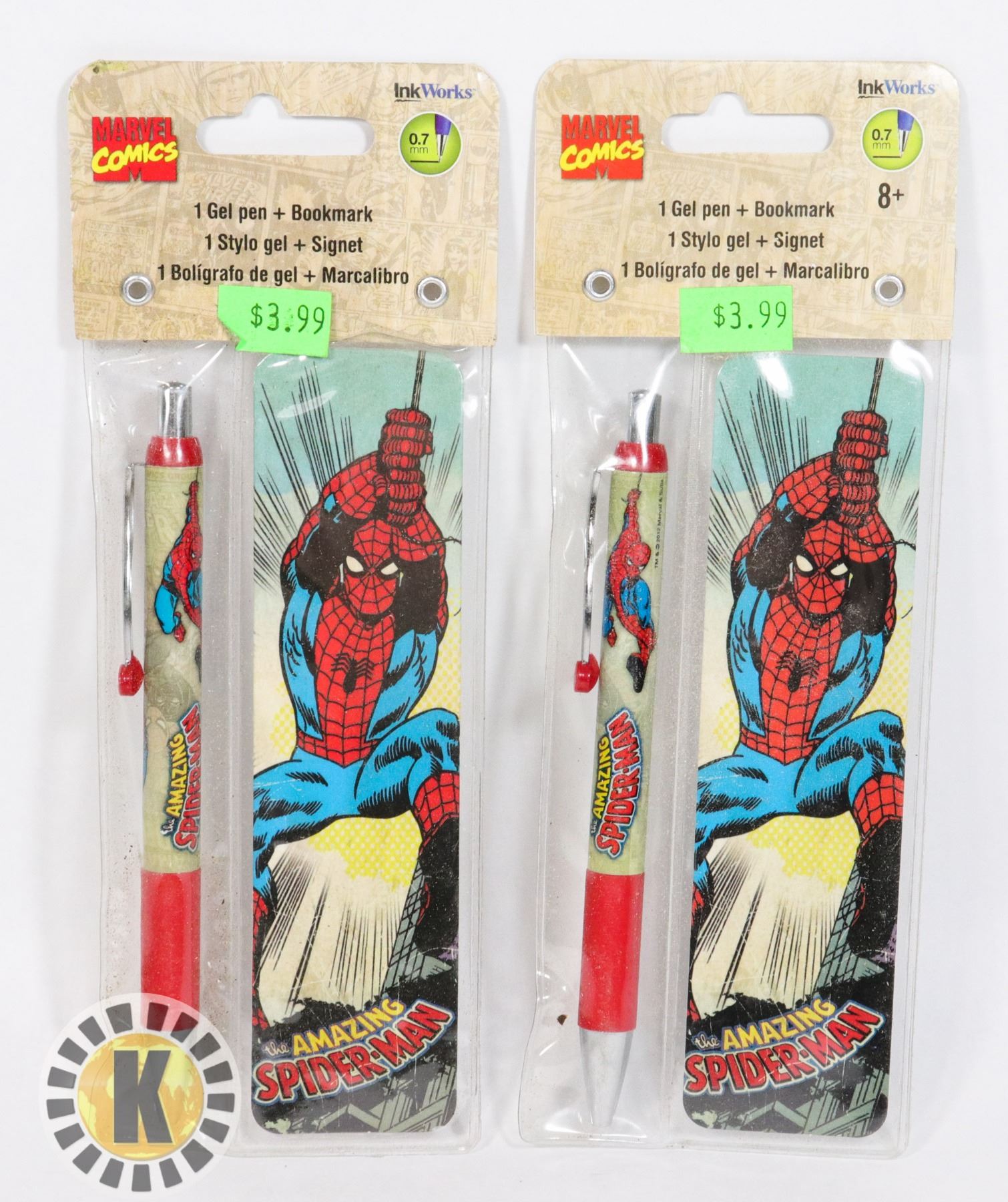 TWO NEW SPIDERMAN PEN AND BOOKMARK SETS