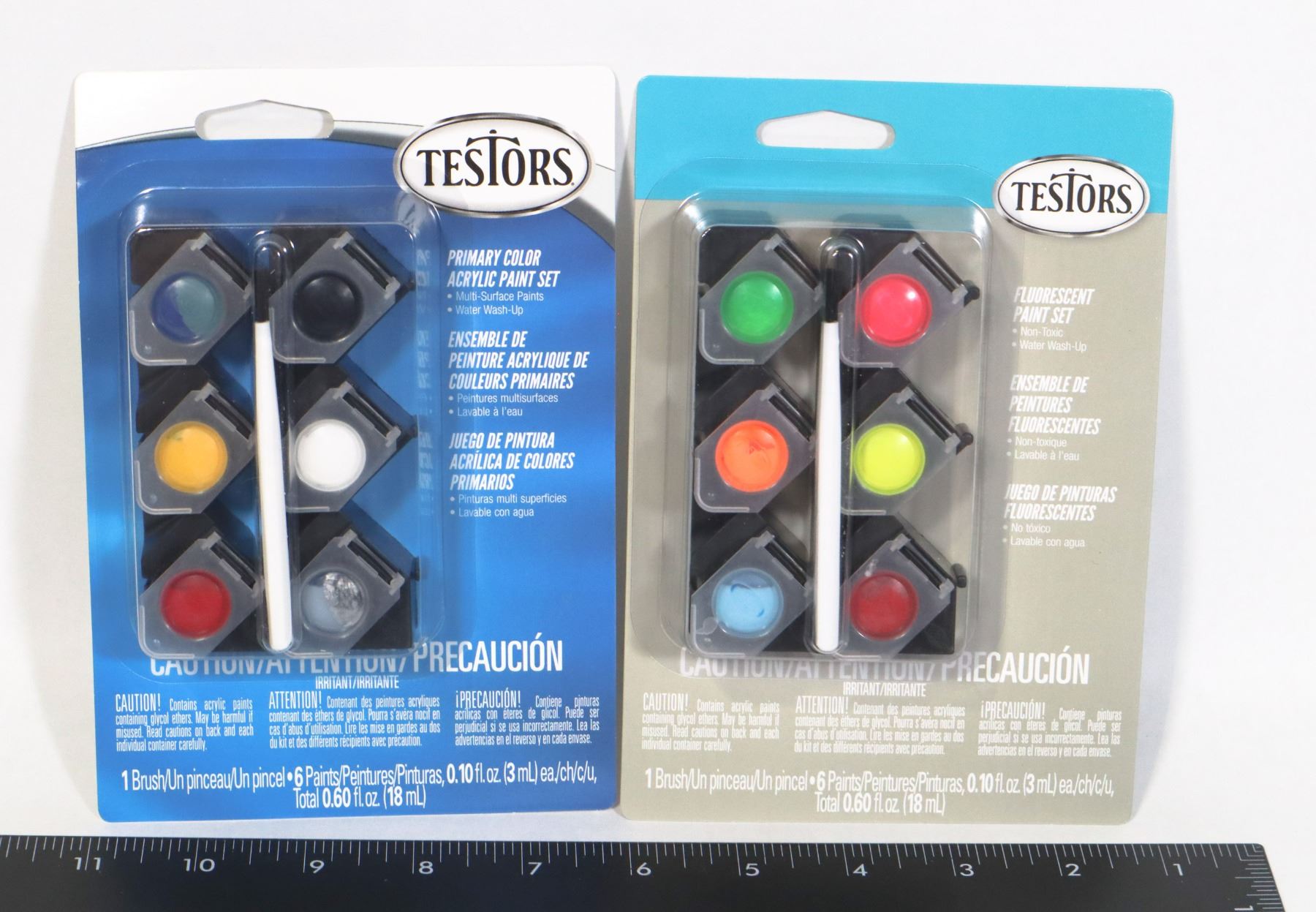 ONE IS PRIMARY COLOURS, THE OTHER IS FLUORESCENT COLOURS. WATER CLEAN UP