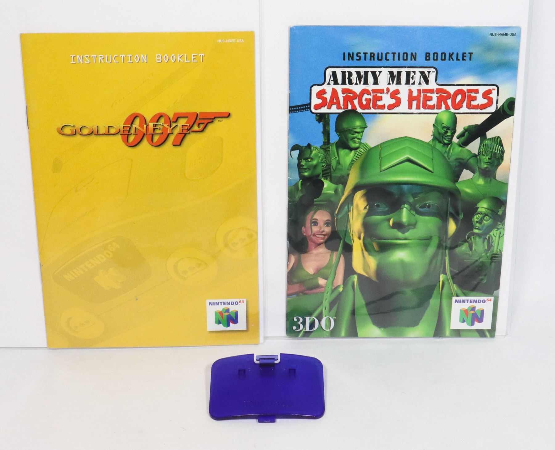 (GOLDENEYE AND ARMY MEN SARGES HEROES) SOLD WITH NINTENDO 64 PURPLE EXPANSION PACK COVER