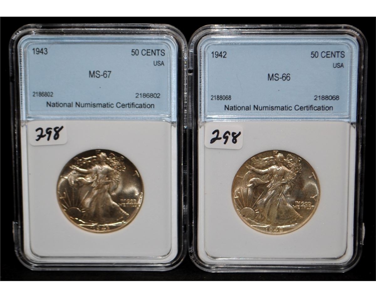1942 WALKING LIBERTY HALF DOLLAR - NNC MS66 & 1943 WALKING LIBERTY HALF DOLLAR - NNC MS67 - SOLD PER COIN TIMES 2