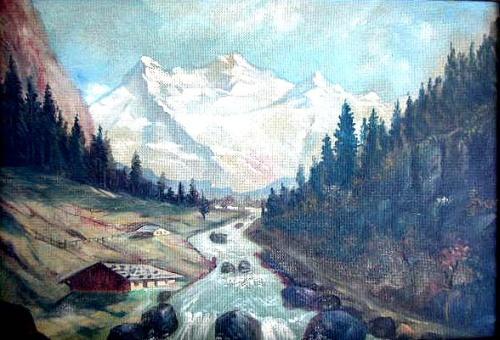 TWO OILS ON PANEL; One depicting a rapidly flowing stream, signed LL A. Vogler, dated 1948, the second of a European seaside village (imperfections) largest 31"h x 23"w