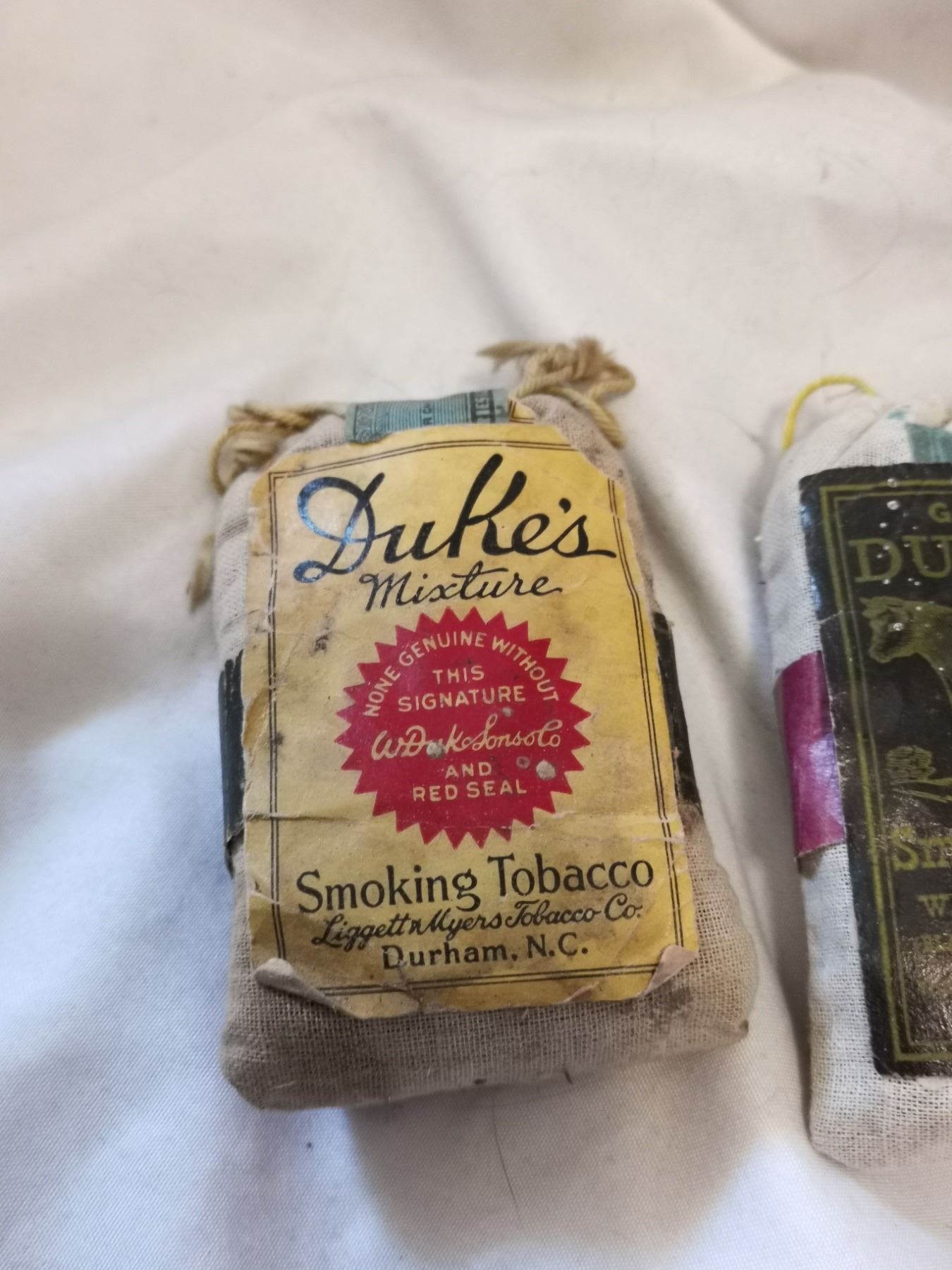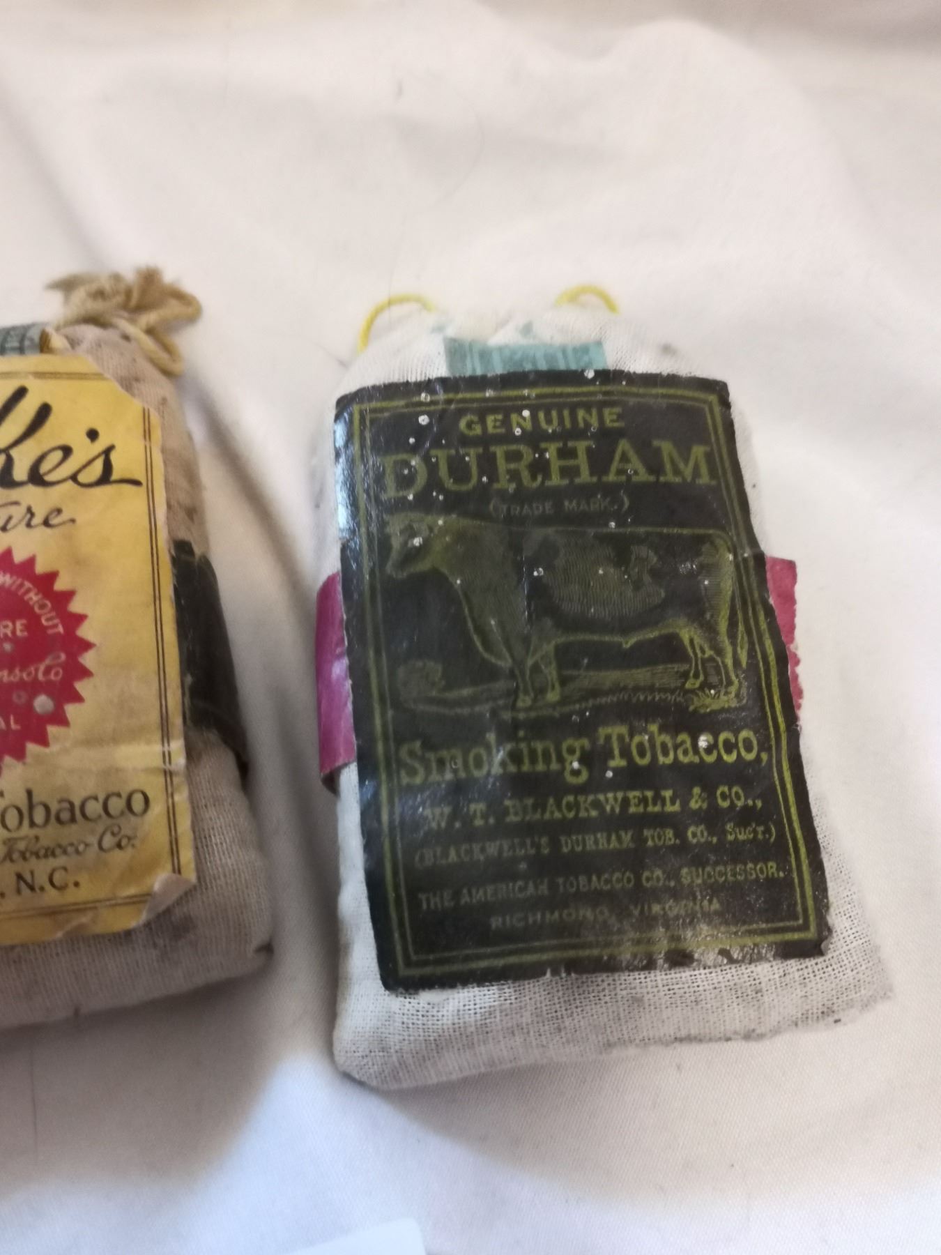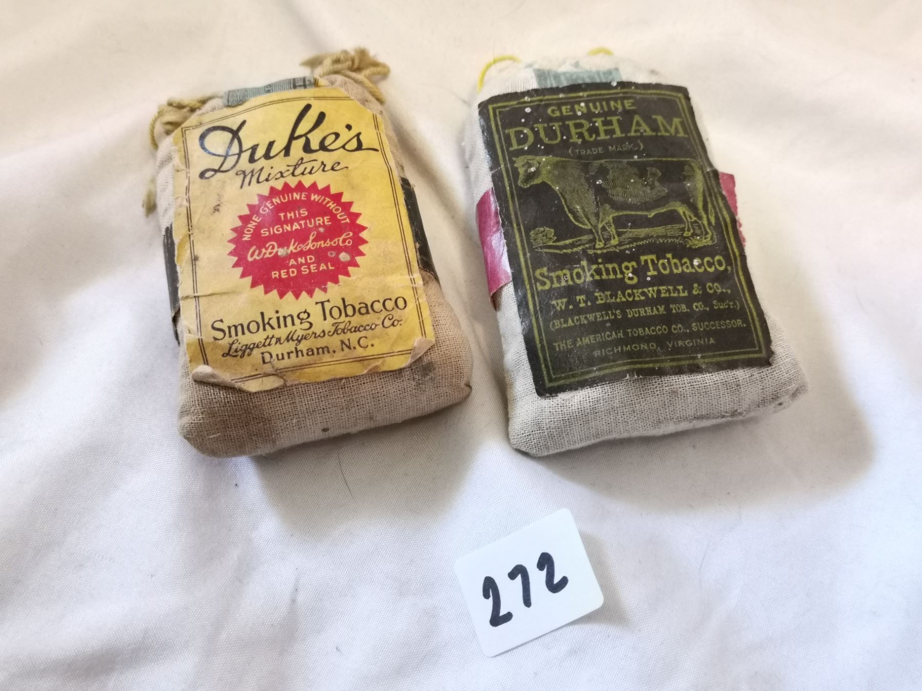 TWO OLD TOBACCO POUCHES, DUKES, DURHAM