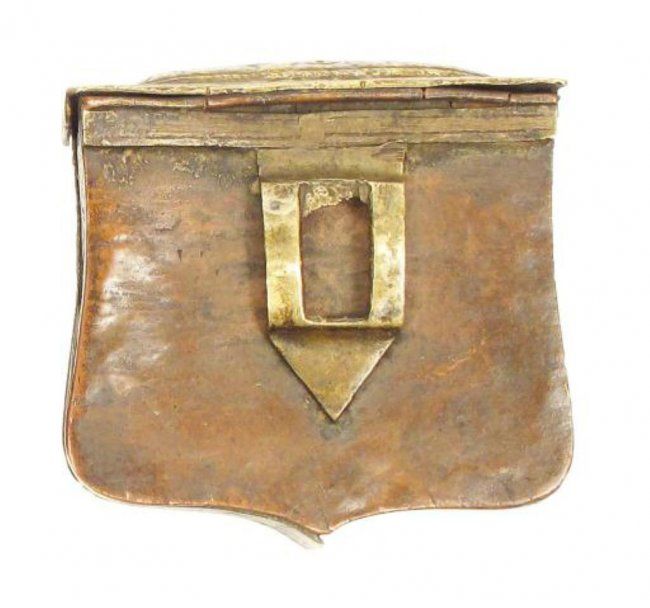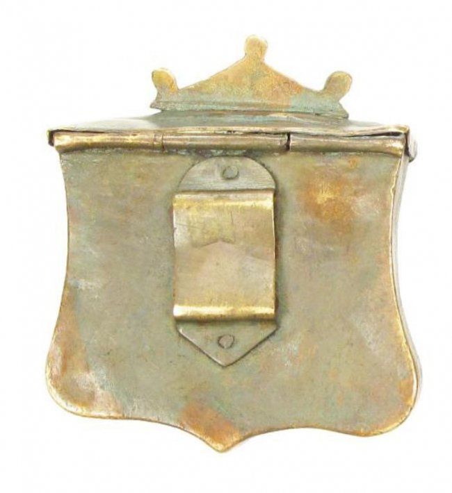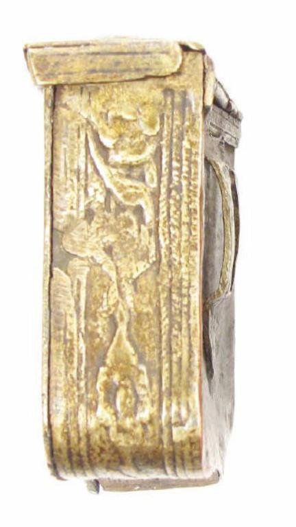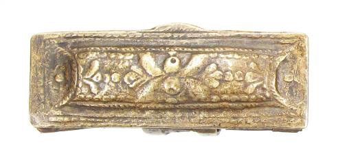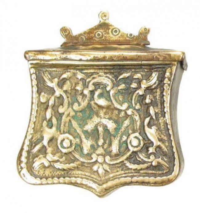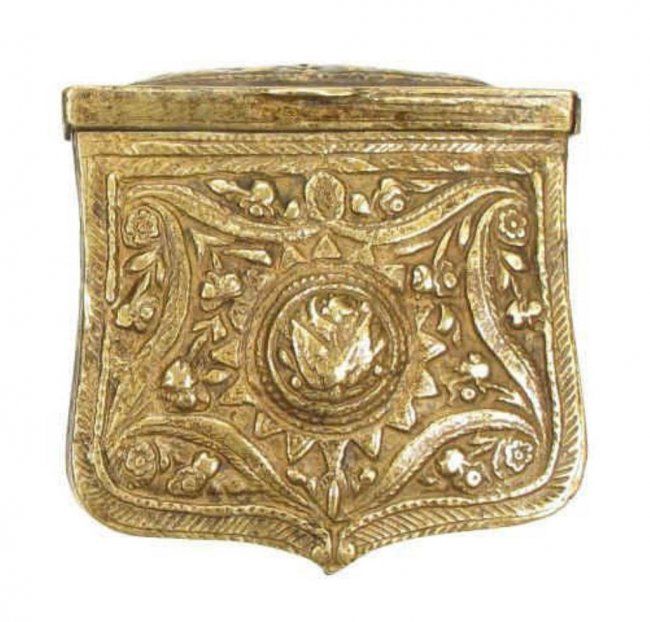 Of brass, with cast and chased motifs and hinged lids.First half of the 19th century. Light wear.
