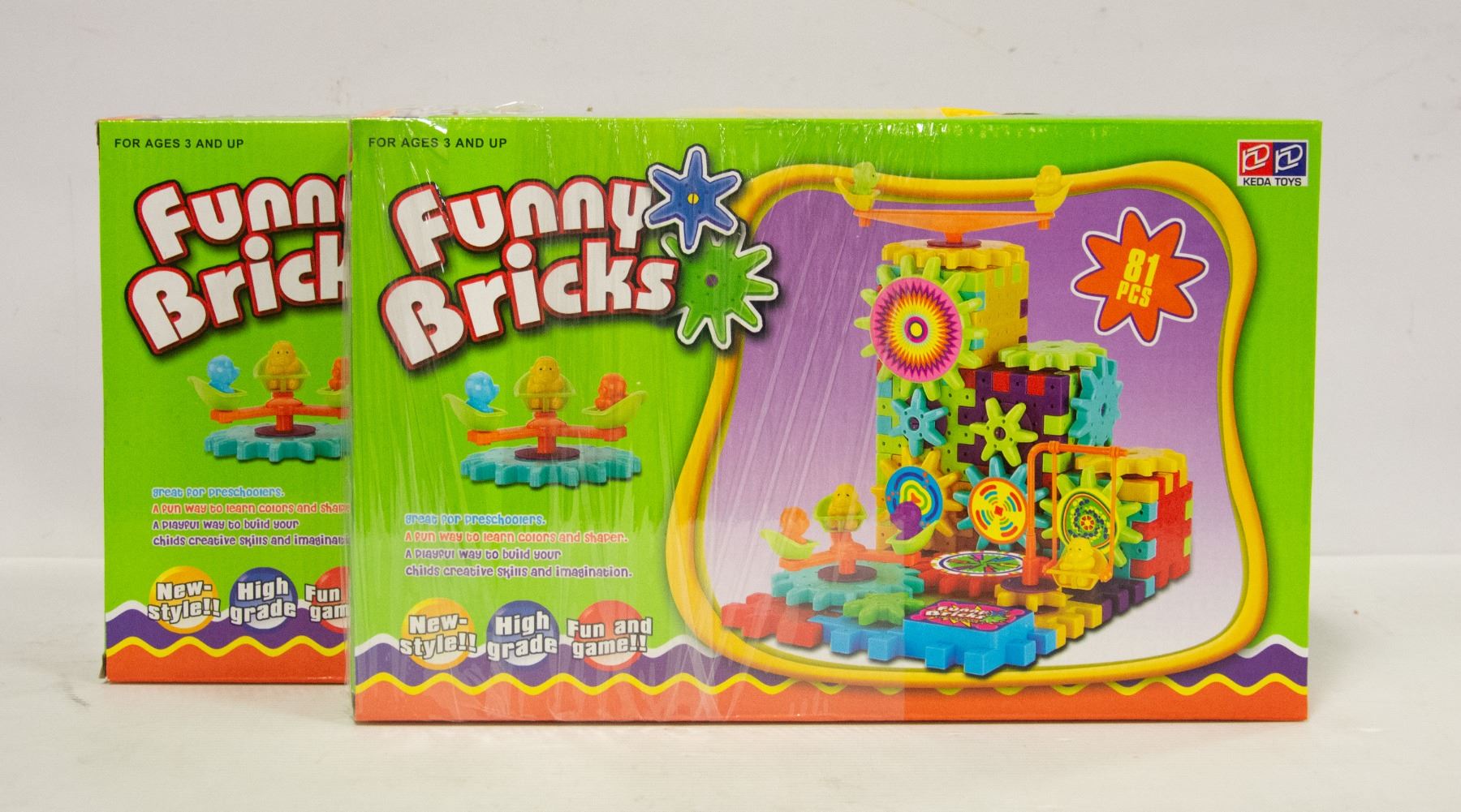TWO PACKS OF 81PC FUNNY BRICKS, BATTERY OPERATED