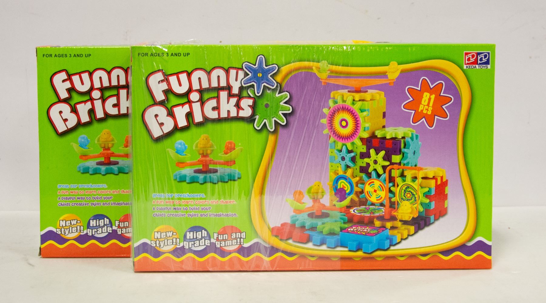 TWO PACKS OF 81PC FUNNY BRICKS, BATTERY OPERATED