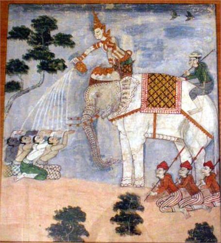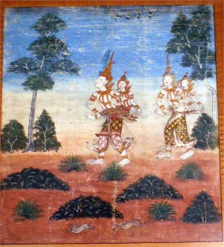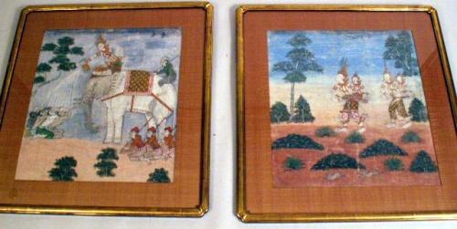 Probably Thai, each labeled on the back and titled "The Elephant Parsons" and "The Hermitage". Losses and wear. 21"h x 19"w.