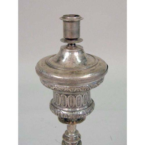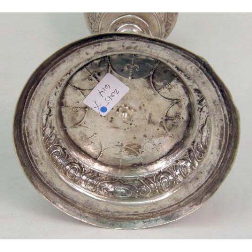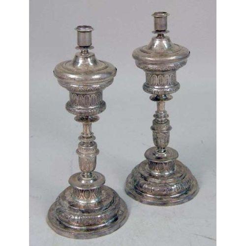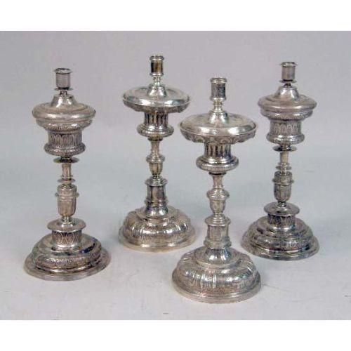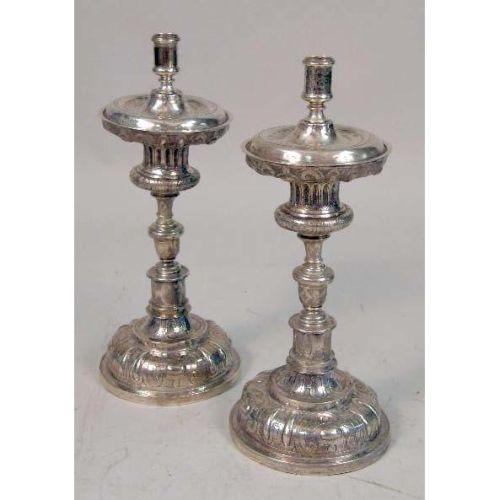 TWO PAIR OF GERMAN SILVER OR WHITE METAL ECCLESIASTICAL PATENS<BR><BR>Mexico or South America. The tallest 17 1/2" h.