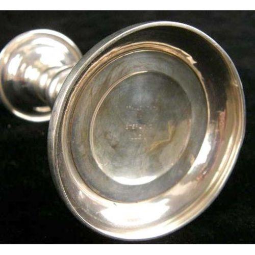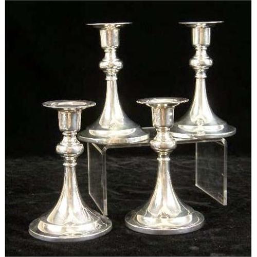 TWO PAIR OF SIMILAR STERLING SILVER WEIGHTED CANDLESTICKS<BR><BR>All monogrammed "MMH", one pair by Spaulding, one by Dominick & Haff, each 5-1/2"high, losses