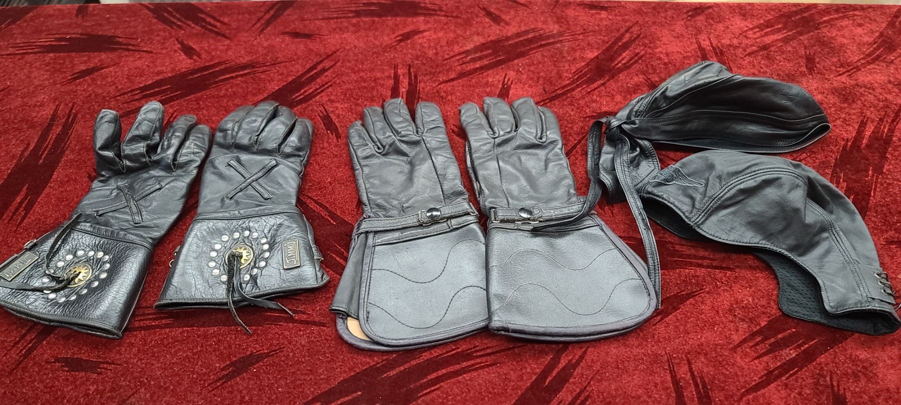 TWO PAIRS OF RIDING GLOVES, SIZE UNKNOWN PLUS TWO BEANIES