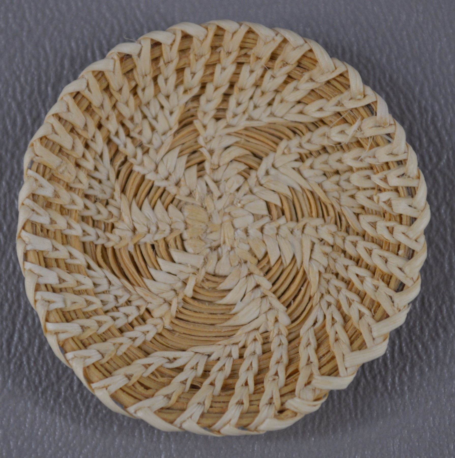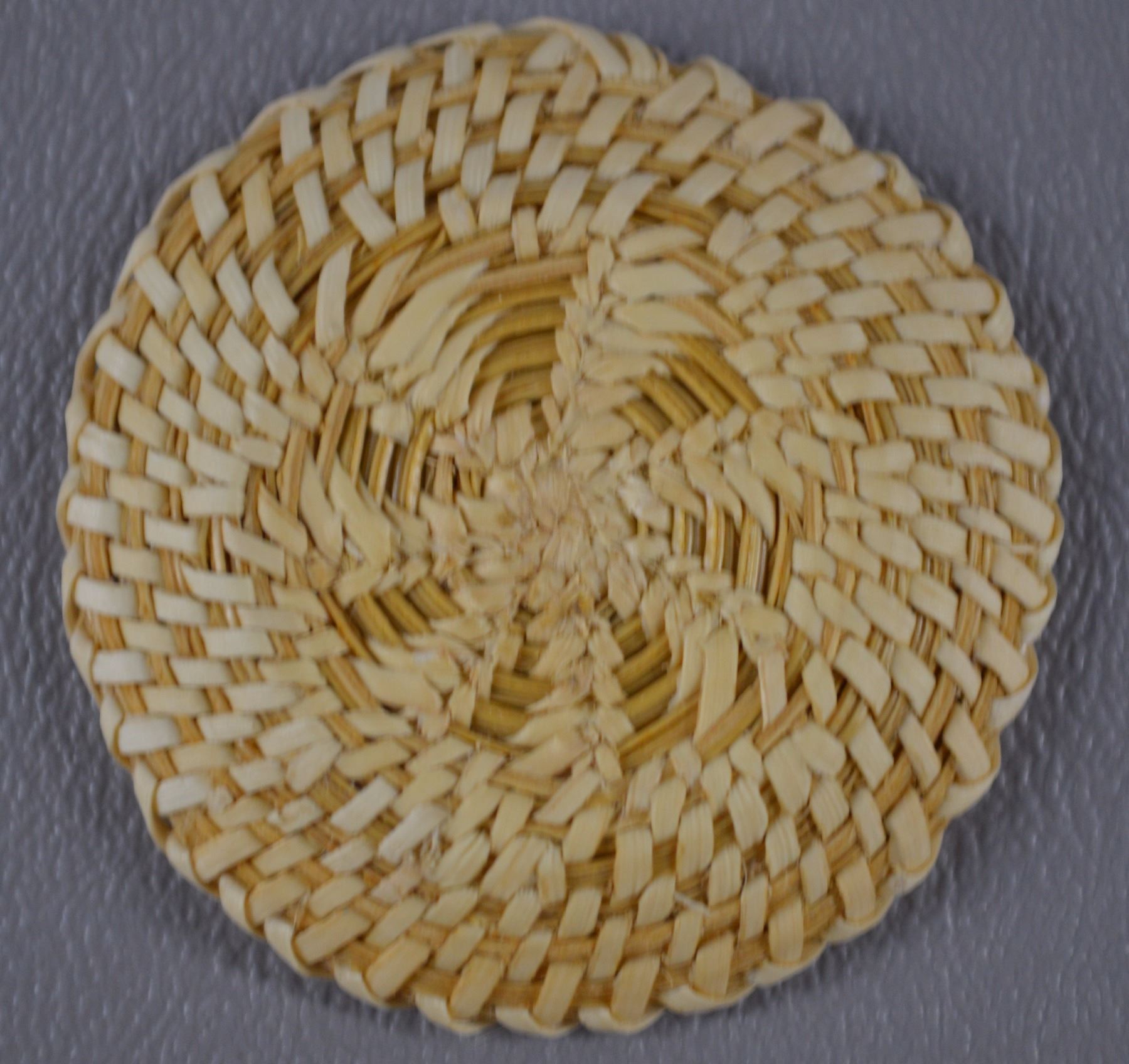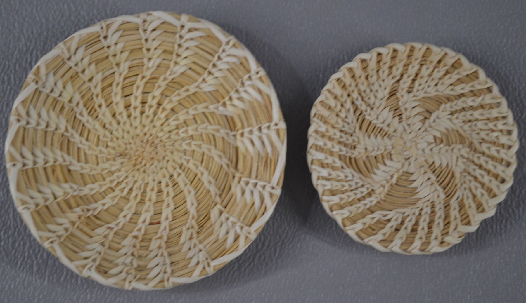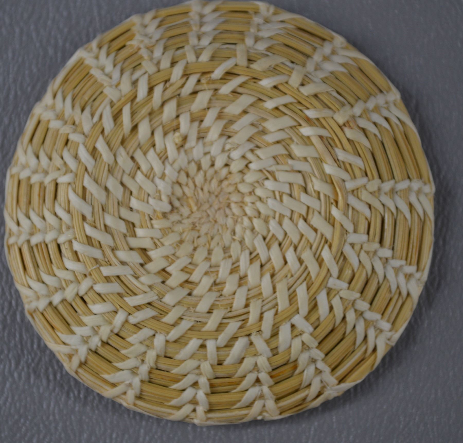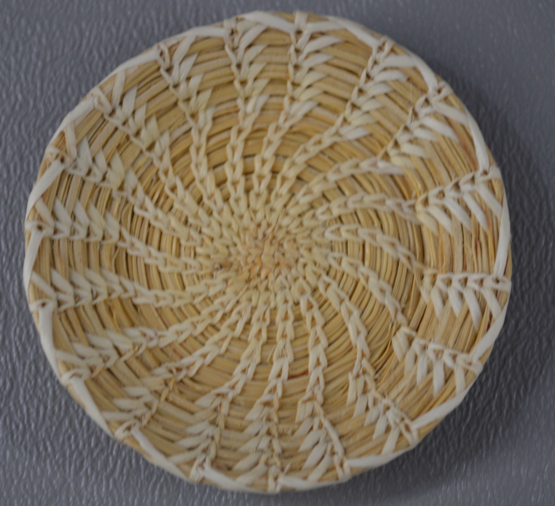 1980's. Hand woven willow and pine needles geometric design.