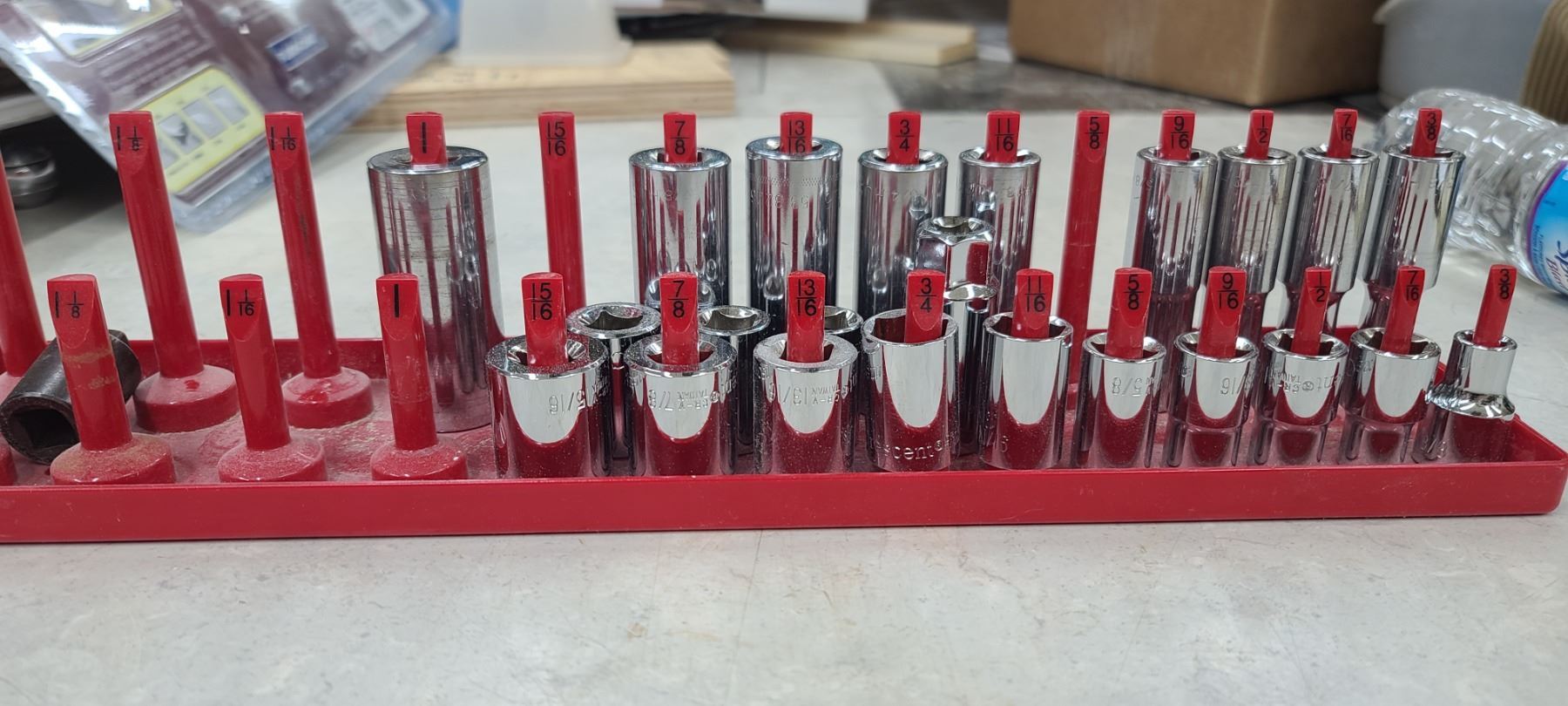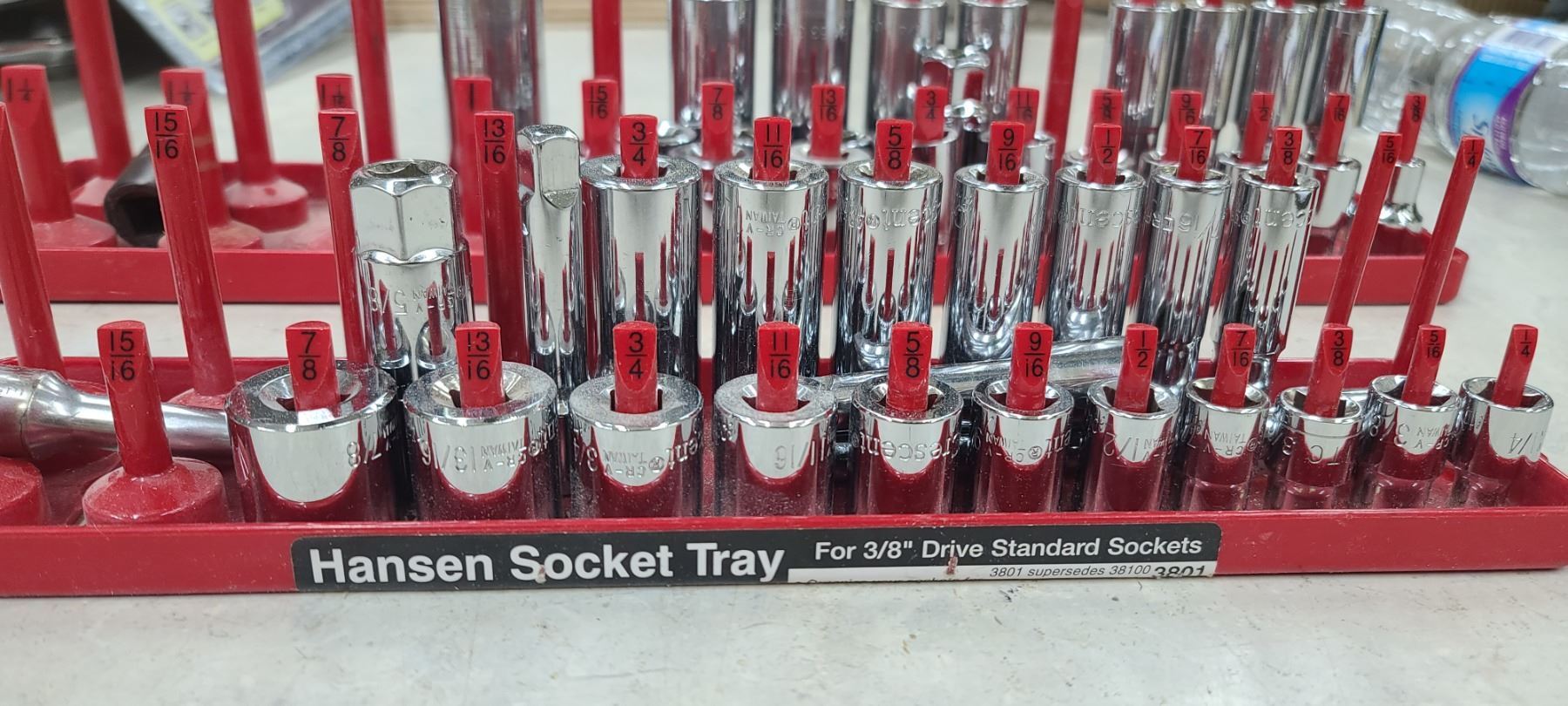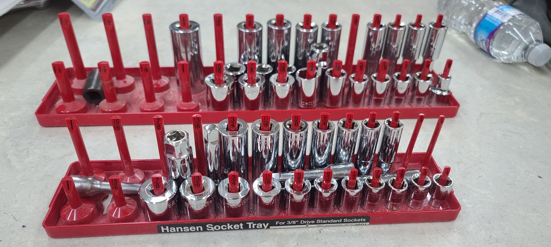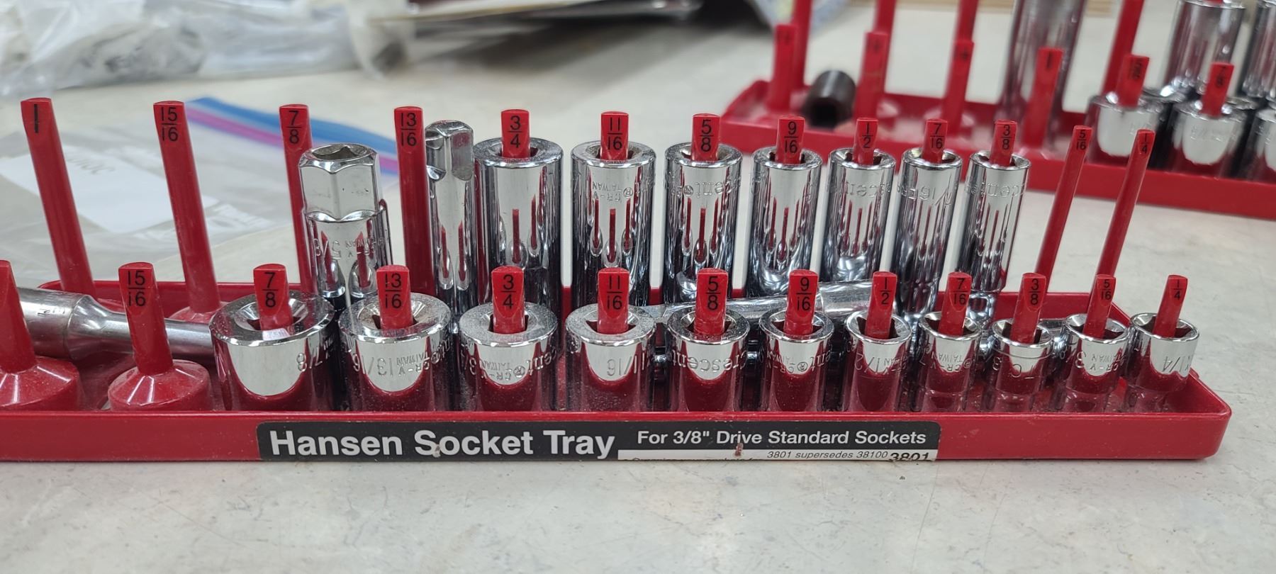 TWO PARTIAL SETS OF STANDARD SOCKETS 1/2" TO 3/8" DRIVE SOCKETS AND TRAYS
