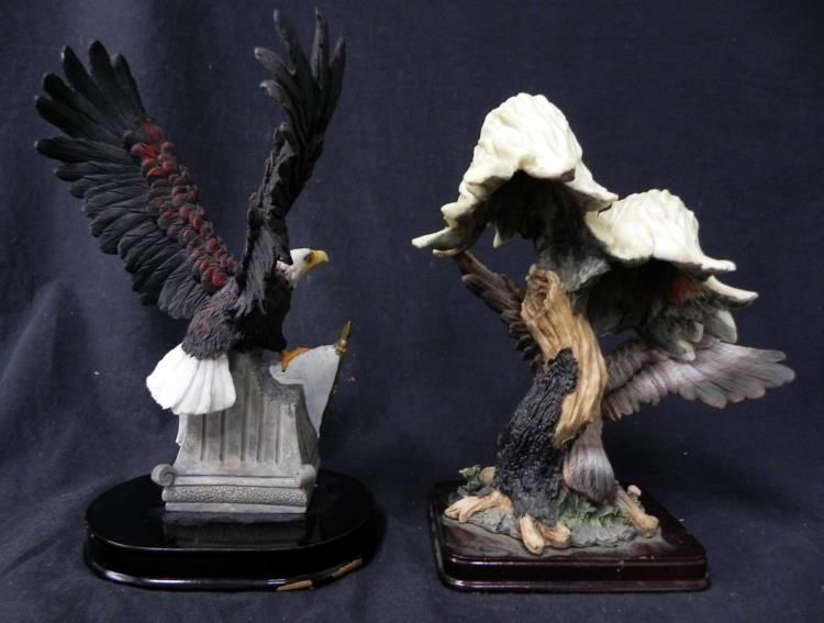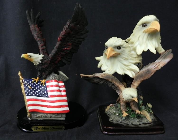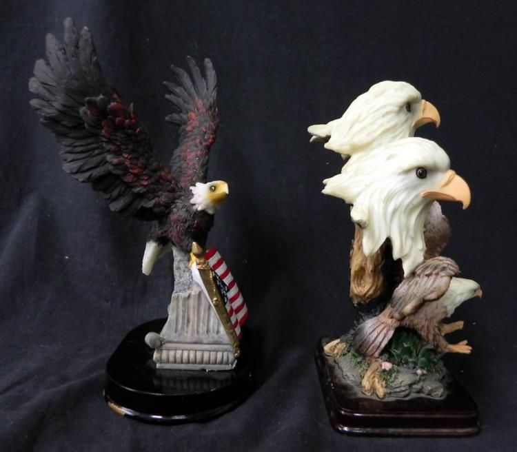 TWO PATRIOTIC U.S. EAGLE STATUES---EAGLE HEAD & EAGLE IS 9" TALL----EAGLE & FLAG IS 10" TALL