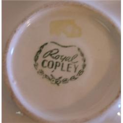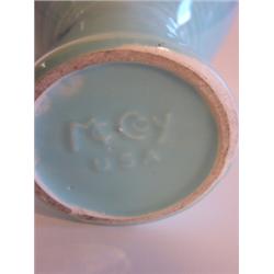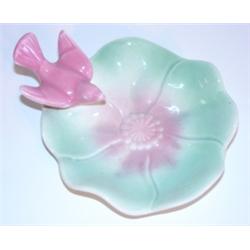 Two piece lot of art pottery consisting of McCoy pottery vase and Royal Copley bird decorated ashtray. Vase features amateur repair. Royal Copley ashtray is marked on bottom. Vase: 7.25", 6" Dia., Ashtray: 4.5" Dia.