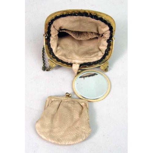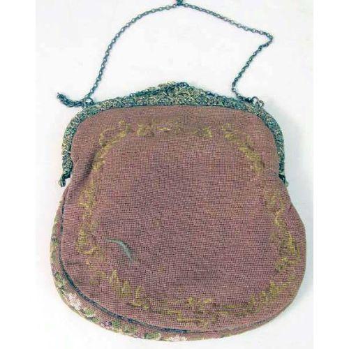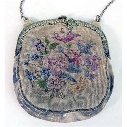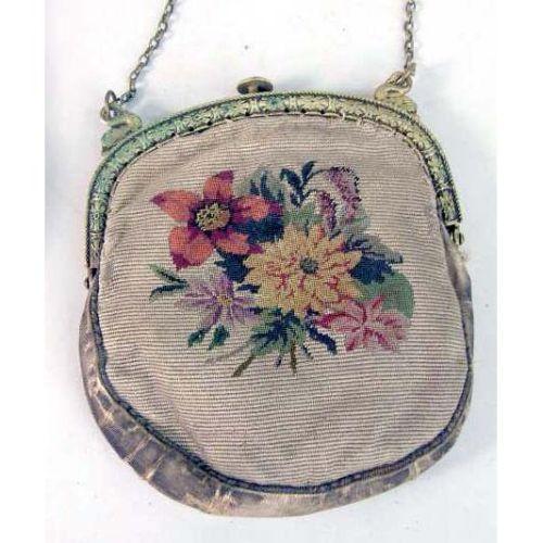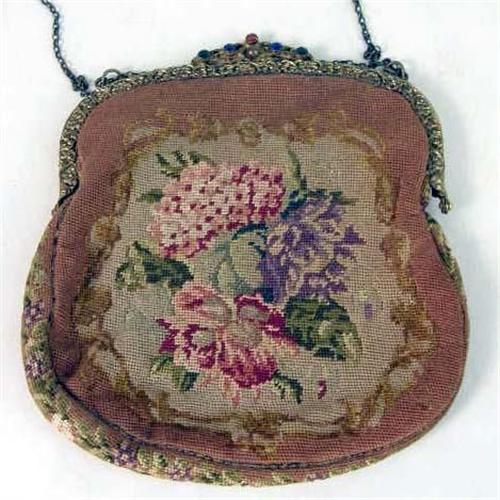 TWO PETIT POINT EVENING BAGS<BR><BR>With chain handle, one with bejeweled clasp