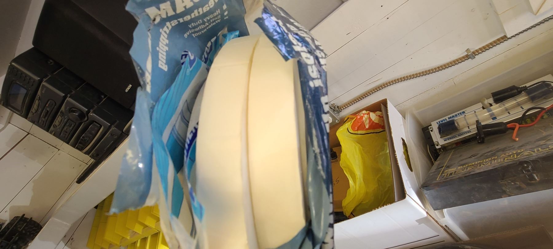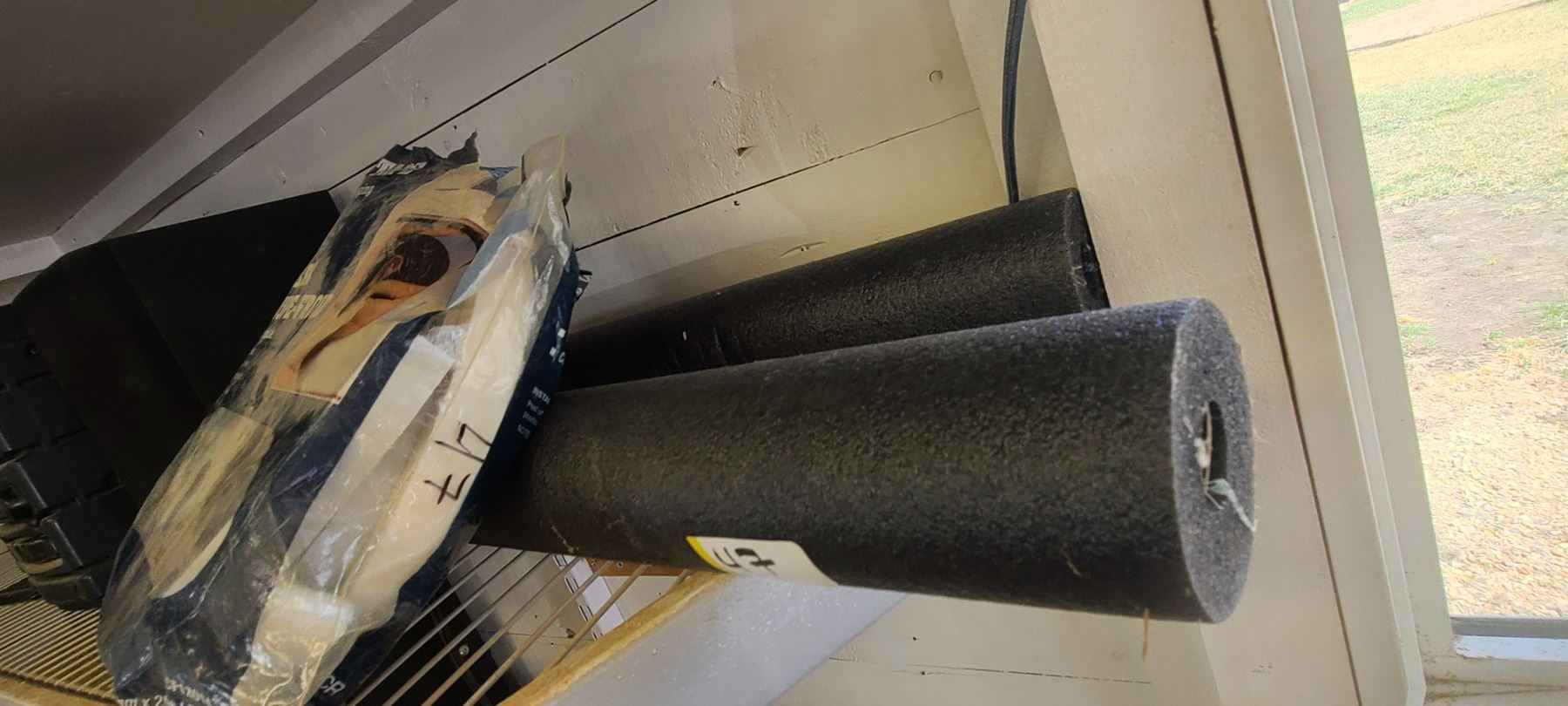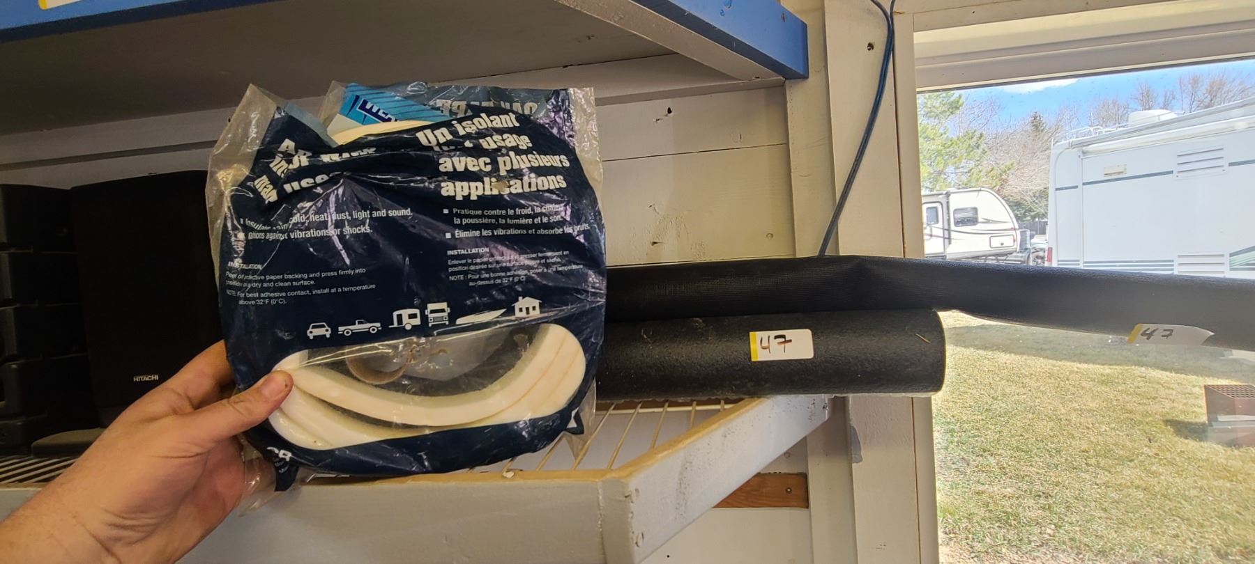 TWO PIECES OF PIPE INSULATION AND DOOR SEAL ROLL