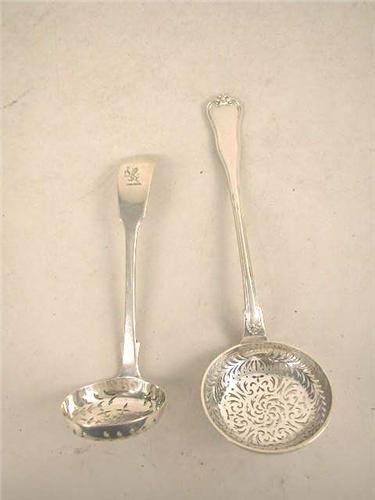 TWO PIERCED BOWL LADLES;