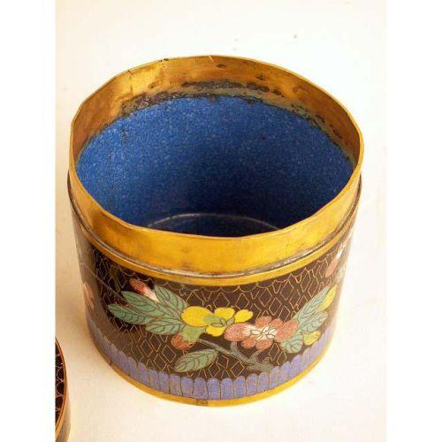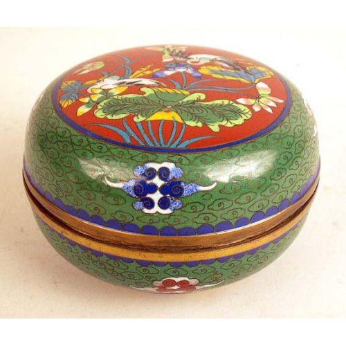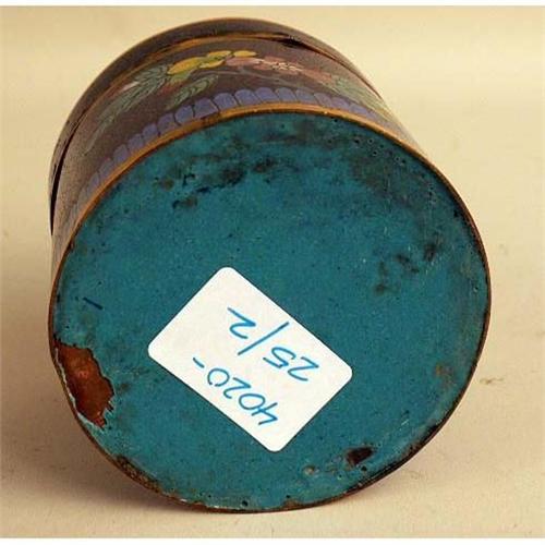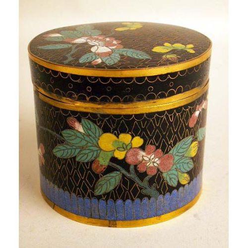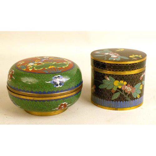TWO POLYCHROME DECORATED CLOISSONE COVERED BOXES<BR><BR>Some wear and losses, From 3 1/2"h x 4 3/4"dia. to 3 1/2"h x 3 5/8"w