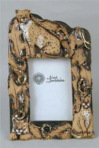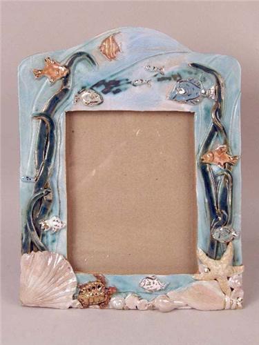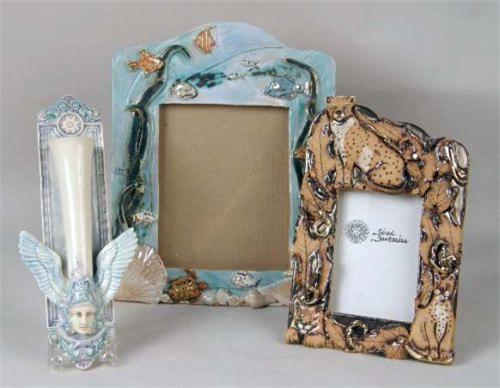 One in an ocean motif, the other in a jungle motif. Both signed "Fired Fantasies," Together with a ceramic wall plaque, fitted with a vase, signed "JDJ." 8"h x 6 1/2"w. 3 pieces