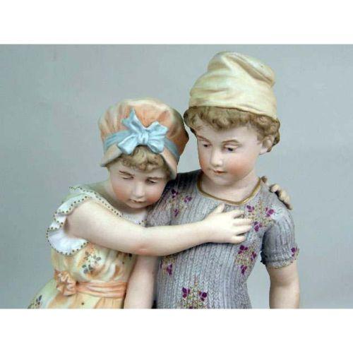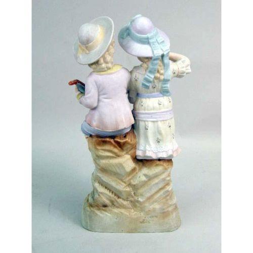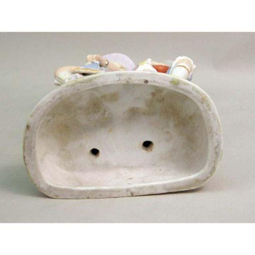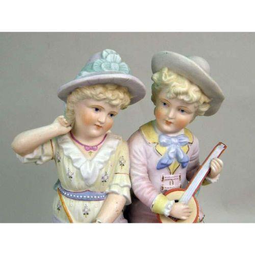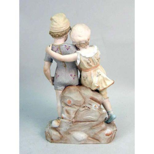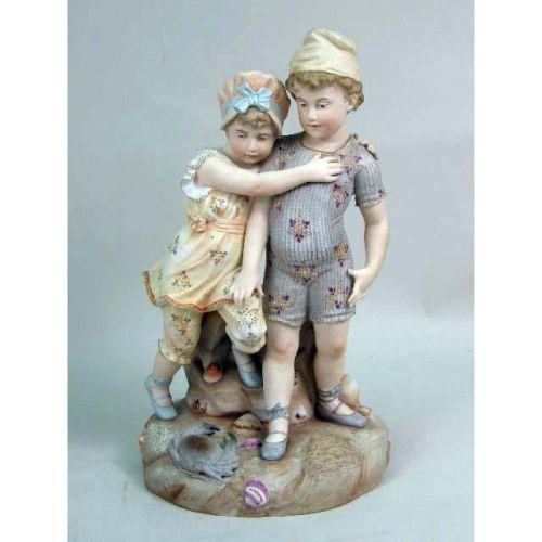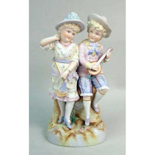 TWO POLYCHROME-DECORATED PORCELAIN FIGURAL GROUPS<BR><BR>Of children, one depicting a musical theme, the other a beach scene, 14"h