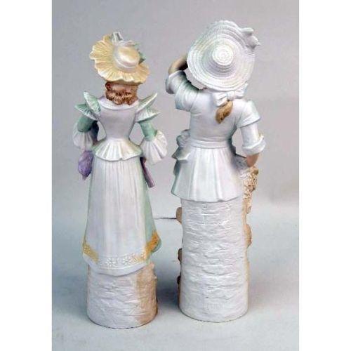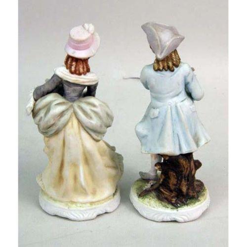 TWO POLYCHROME-DECORATED PORCELAIN FIGURES<BR><BR>Depicting a gentleman and a lady, marked "Lefton China," 7-1/4"h. Together with another similar pair of figures, 14"h, losses. 4 pieces