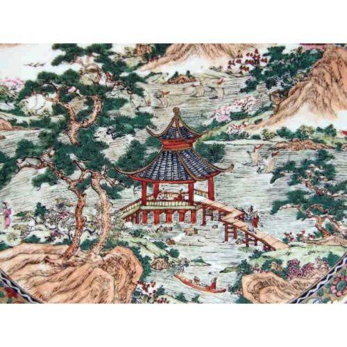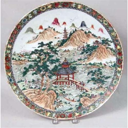TWO POLYCHROME LANDSCAPE PLATTERS<BR><BR>Chinese, losses, 13"dia.