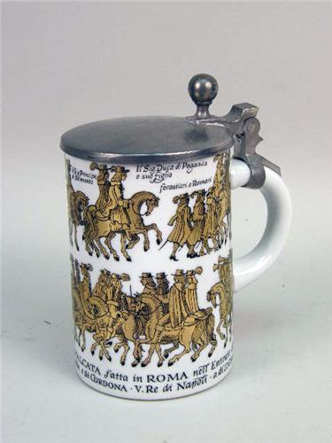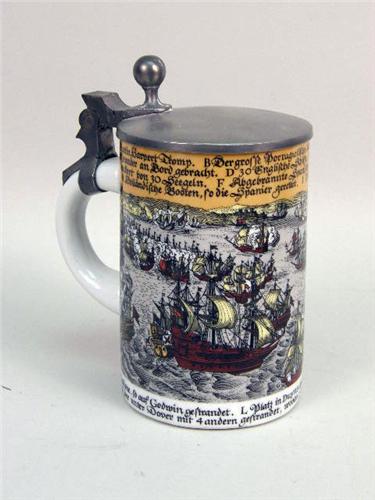 <b>TWO PORCELAINS STEINS WITH PEWTER COVERS</b>